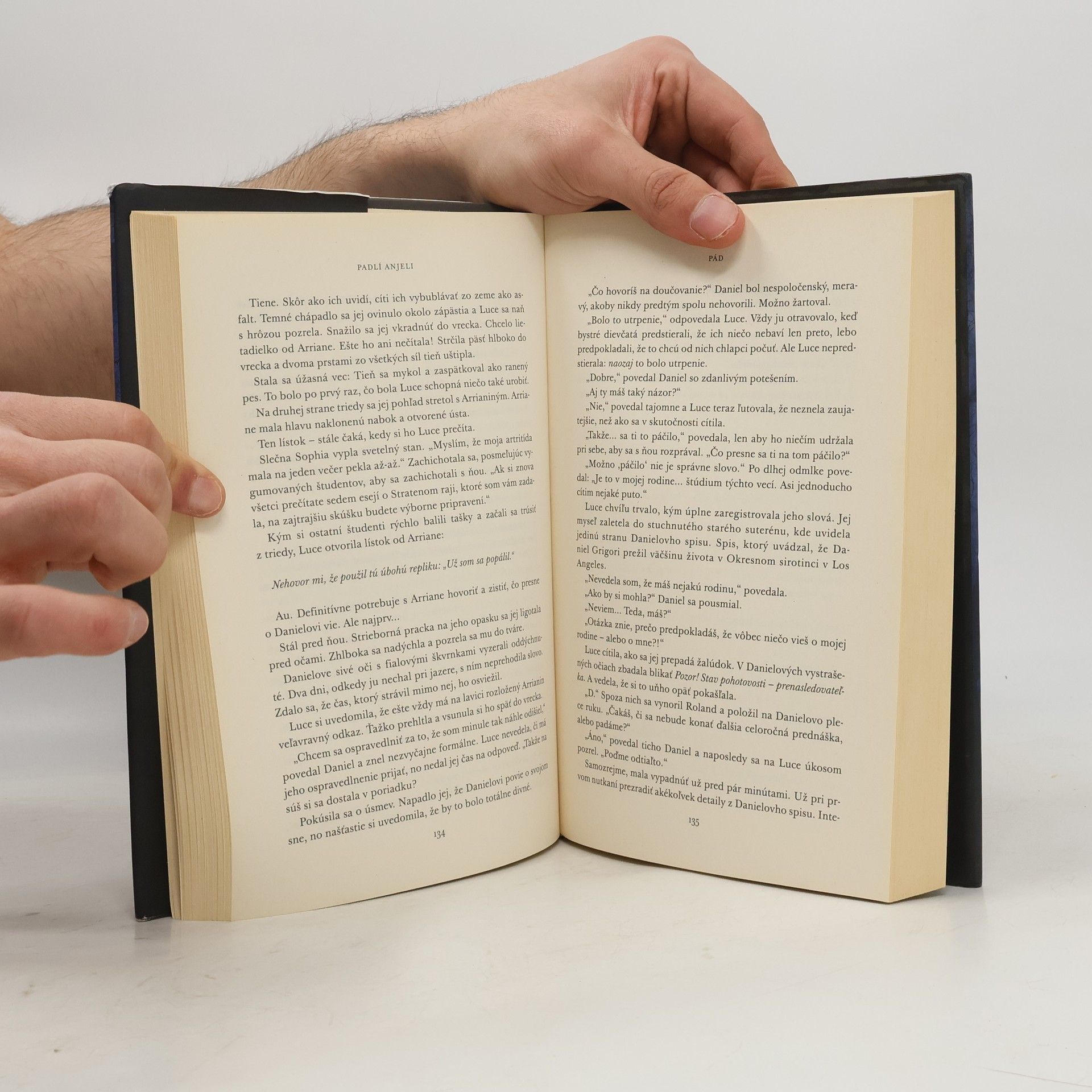 Na Danielovi Grigorim je čosi bolestne známe. Tajomný, uzavretý chlapec pritiahne pozornosť sedemnásťročnej Luce Priceovej hneď v jej prvý deň na internátnej škole Meč a kríž pri meste Savannah. Je jediným svetlým bodom na mieste, kde nie sú dovolené mobilné telefóny, ostatní študenti sú vyšinutí a bezpečnostné kamery ich sledujú na každom kroku. Daniel však nechce mať s Luce nič spoločné – a dáva jej to jasne najavo. No ona sa nevzdáva. Mládenec ju priťahuje ako svetlo nočného motýľa a Luce musí zistiť, čo pred ňou tak zúfalo skrýva... aj keby ju to malo stáť život. Nebezpečne vzrušujúci a temne romantický triler PÁD je súčasne najúžasnejším príbehom lásky!