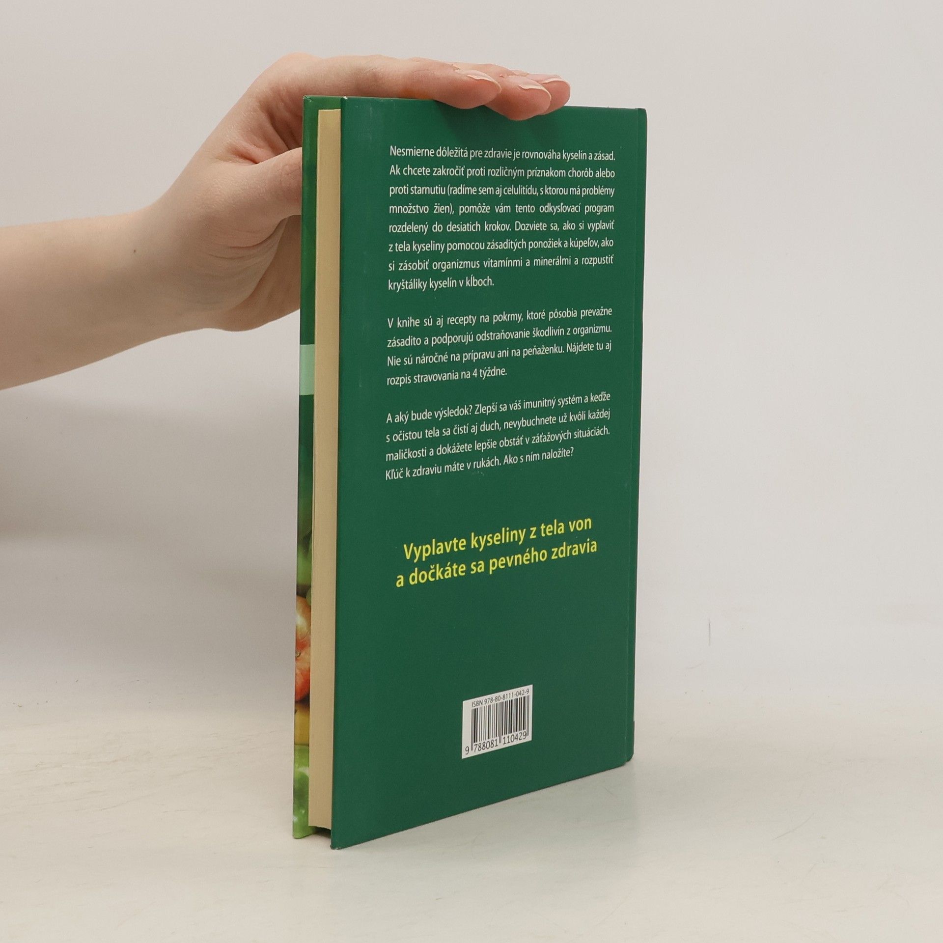 Nesmierne dôležitá pre zdravie je rovnováha kyselín a zásad. Ak chcete zakročiť proti rozličným príznakom chorôb alebo proti starnutiu (radíme sem aj celulitídu, s ktorou má problémy množstvo žien), pomôže vám tento odkysľovací program rozdelený do desiatich krokov. Dozviete sa, ako si vyplaviť z tela kyseliny pomocou zásaditých ponožiek a kúpeľov, ako si zásobiť organizmus vitamínmi a minerálmi a rozpustiť kryštáliky kyselín v kĺboch. V knihe sú aj recepty na pokrmy, ktoré pôsobia prevažne zásadito a podporujú odstraňovanie škodlivín z organizmu. Nie sú náročné na prípravu ani na peňaženku. Nájdete tu aj rozpis stravovania na 4 týždne. A aký bude výsledok? Zlepší sa váš imunitný systém a keďže s očistou tela sa čistí aj duch, nevybuchnete už kvôli každej maličkosti a dokážete lepšie obstáť v záťažových situáciách. Kľúč k zdraviu máte v rukách. Ako s ním naložíte?
