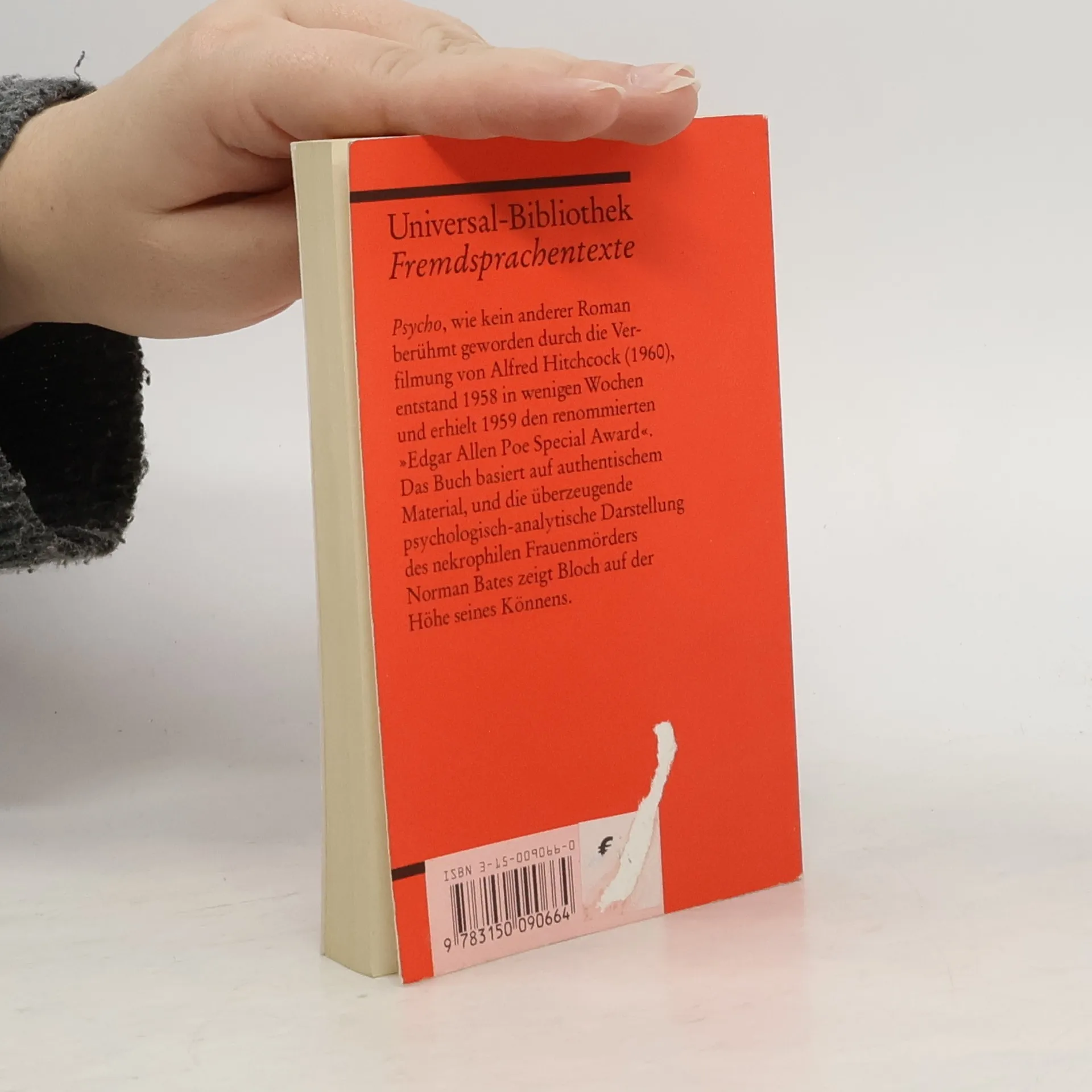 Englische Literatur in Reclams Roter Reihe: das ist der englische Originaltext – mit Worterklärungen am Fuß jeder Seite, Nachwort und Literaturhinweisen. »Psycho«, wie kein anderer Roman berühmt geworden durch die Verfilmung von Alfred Hitchcock (1960), entstand 1958 in wenigen Wochen und erhielt 1959 den renommierten »Edgar Allan Poe Special Award«. Das Buch basiert auf authentischem Material, und die überzeugende psychologisch-analytische Darstellung des nekrophilen Frauenmörders Norman Bates zeigt Bloch auf der Höhe seines Könnens. Englische Lektüre: Niveau B2–C1 (GER) Sprachen: Deutsch, Englisch