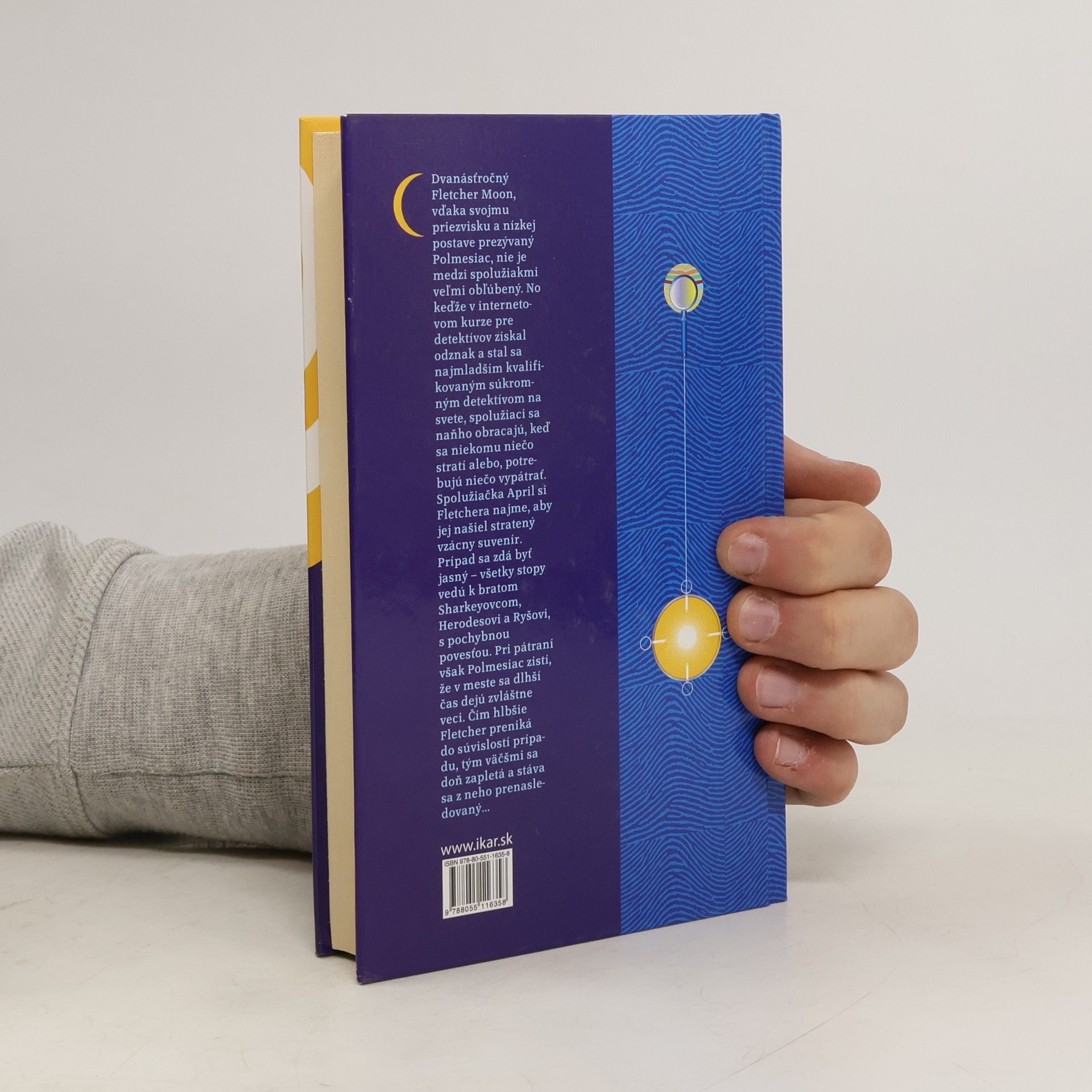 Dvanásťročný Fletcher Moon, vďaka svojmu priezvisku a nízkej postave prezývaný Polmesiac, nie je medzi spolužiakmi veľmi obľúbený. No keďže v internetovom kurze pre detektívov získal odznak a stal sa najmladším kvalifikovaným súkromným detektívom na svete, spolužiaci sa naňho obracajú, keď sa niekomu niečo stratí alebo potrebuje niečo vypátrať. Spolužiačka April si Fletchera najme, aby jej našiel stratený vzácny suvenír. Prípad sa zdá byť jasný - všetky stopy vedú k bratom Sharkeyovcom, Herodesovi a Ryšovi, s pochybnou povesťou. Pri pátraní však Polmesiac zistí, že v meste sa dlhší čas dejú zvláštne veci. Čím hlbšie Fletcher preniká do súvislostí prípadu, tým väčšmi sa doň zapletá a stáva sa z neho prenasledovaný…