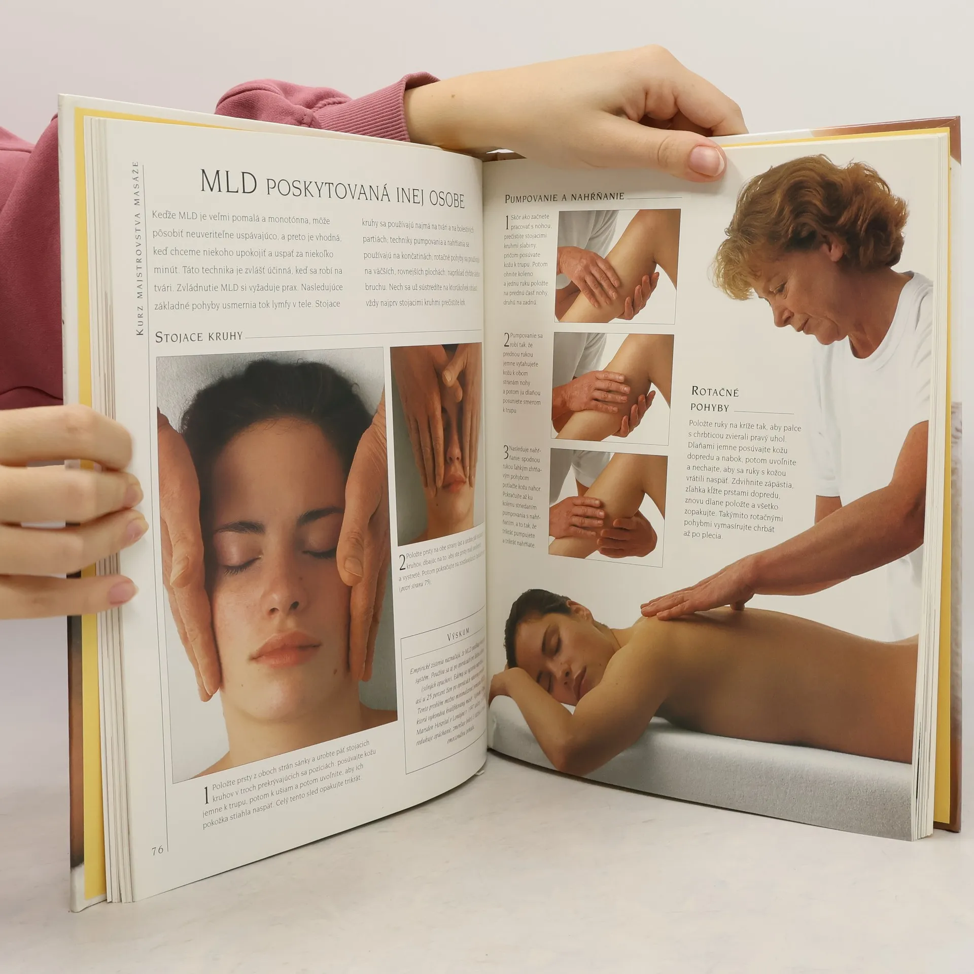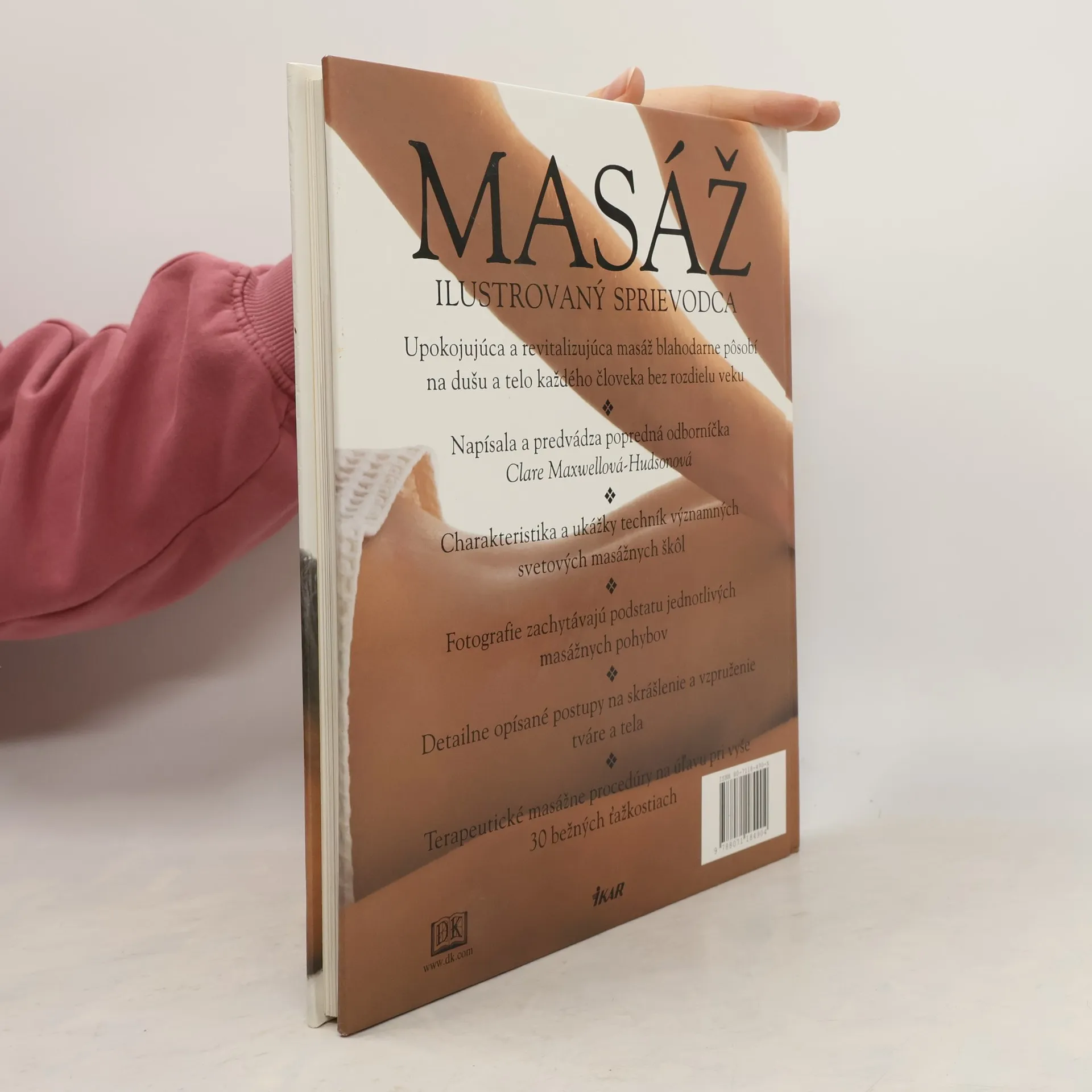 Detailné opisy jednotlivých masážnych pohybov sú bohato ilustrované fotografiami, ktoré zachytávajú podstatu jednotlivých masážnych pohybov... Osobitné kapitoly sú venované masáži ako prostriedku na vzpruženie a skrášlenie tela a tváre, uplatneniu masáže v tehotenstve a u malých i väčších detí, ako aj pri rôznych zdravotných ťažkostiach. Terapeutické masážne procedúry na úľavu pri vyše 30 bežných ťažkostiach.