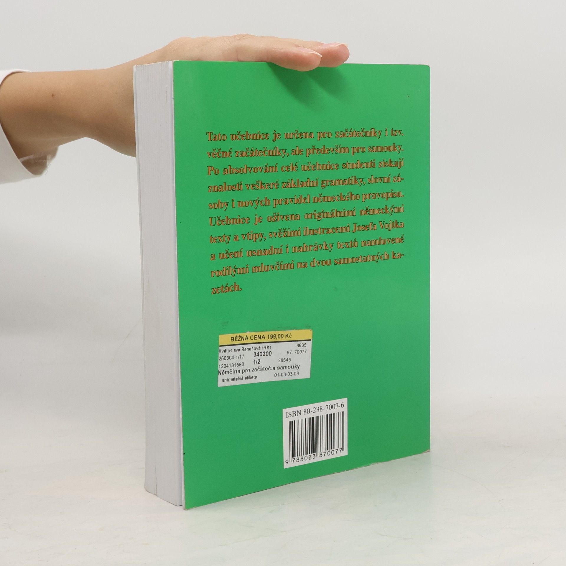 Tato učebnice je určena nejen pro věčné začátečníky,ale především pro samouky. Po absolvování celé učebnice získají studenti znalosti veškeré základní gramatiky, slovní zásoby i nových pravidel německého pravopisu. Učení vám jistě oživí německé texty a vtipné ilustrace Josefa Vojtka.