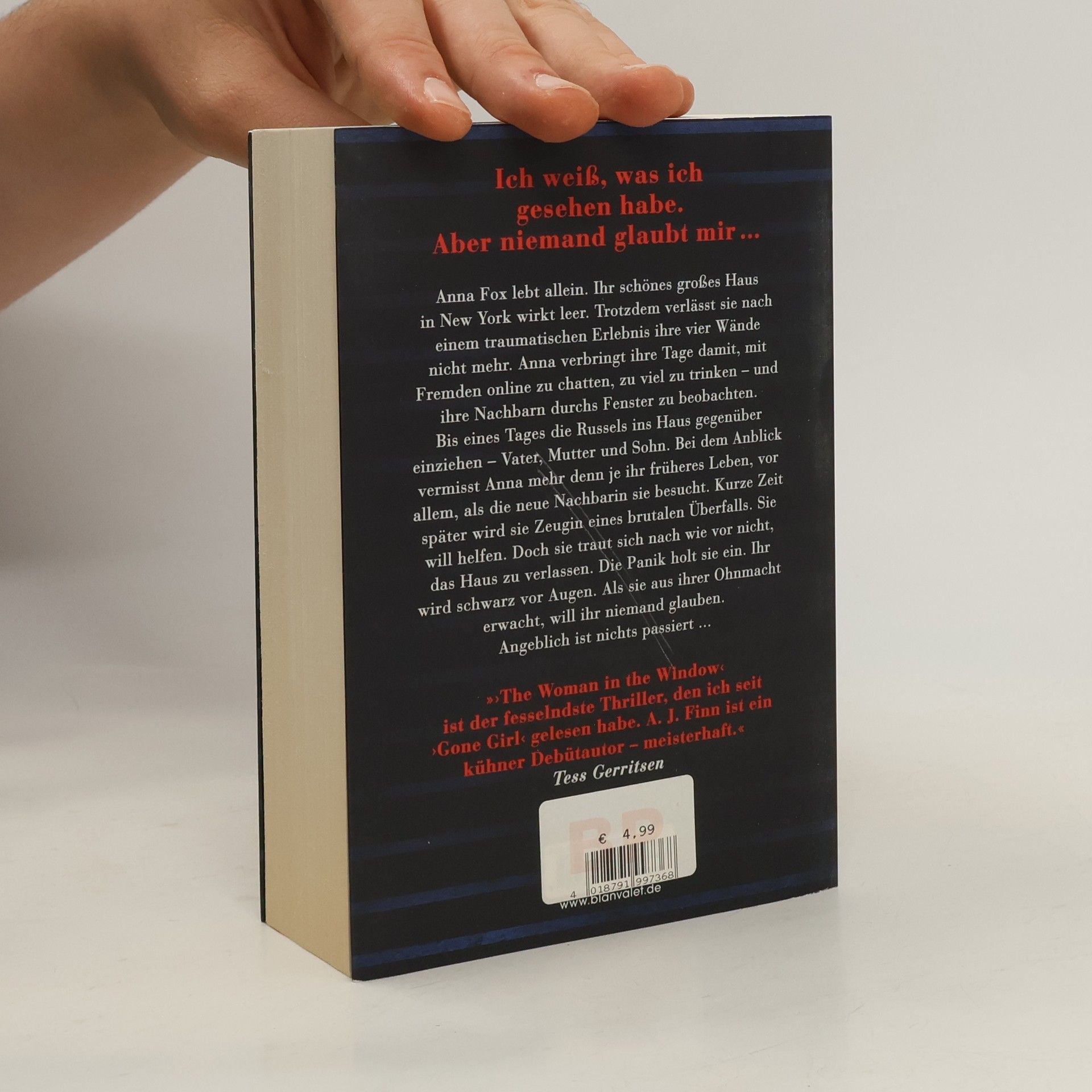Der internationale Bestseller: von 0 auf Platz 1 der New York Times-Bestsellerliste und von 0 auf Platz 2 der Sunday Times-Bestsellerliste in England!Die Blockbuster-Verfilmung des SPIEGEL-Bestsellers auf Netflix: mit Amy Adams, Julianne Moore und Gary Oldman in den Hauptrollen! »Der fesselndste Thriller, den ich seit 'Gone Girl' gelesen habe. A. J. Finn ist ein kühner Debütautor – meisterhaft.« Tess GerritsenAnna Fox lebt allein. Ihr schönes großes Haus in New York wirkt leer. Trotzdem verlässt sie nach einem traumatischen Erlebnis ihre vier Wände nicht mehr. Anna verbringt ihre Tage damit, mit Fremden online zu chatten, zu viel zu trinken – und ihre Nachbarn durchs Fenster zu beobachten. Bis eines Tages die Russels ins Haus gegenüber einziehen – Vater, Mutter und Sohn. Bei dem Anblick vermisst Anna mehr denn je ihr früheres Leben, vor allem, als die neue Nachbarin sie besucht. Kurze Zeit später wird sie Zeugin eines brutalen Überfalls. Sie will helfen. Doch sie traut sich nach wie vor nicht, das Haus zu verlassen. Die Panik holt sie ein. Ihr wird schwarz vor Augen. Als sie aus ihrer Ohnmacht erwacht, will ihr niemand glauben. Angeblich ist nichts passiert ...