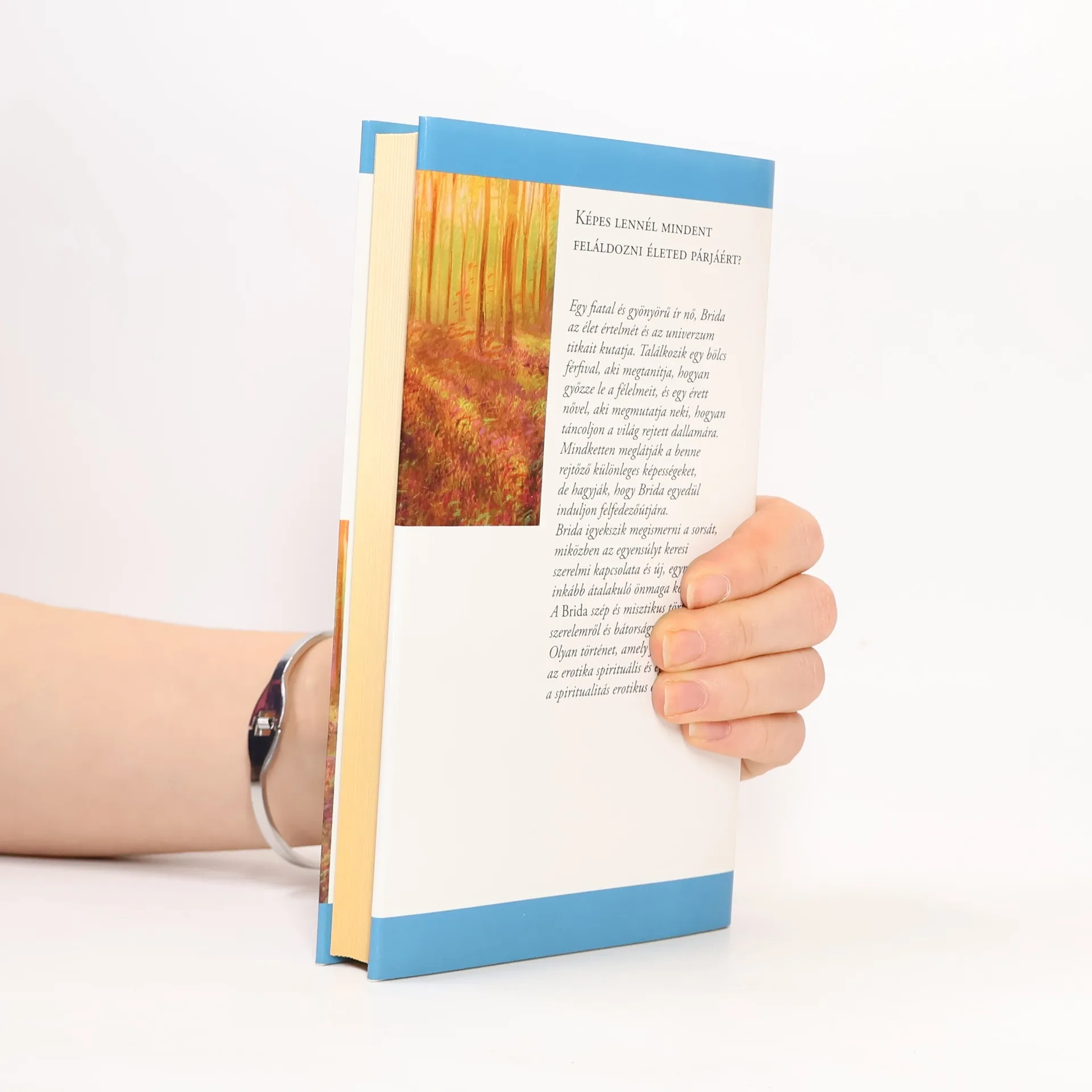Képes lennél mindent feláldozni életed párjáért? Brida, a fiatal és gyönyörű ír nő az élet értelmét és az univerzum titkait kutatja. Találkozik egy bölcs férfival, aki megtanítja, hogyan győzze le a félelmeit, és egy érett nővel, aki megmutatja neki, hogyan táncoljon a világ rejtett dallamára. Mindketten meglátják a Bridában rejtőző különleges képességeket, de hagyják, hogy egyedül induljon felfedezőútjára. Brida igyekszik megismerni a sorsát, keresve a kényes egyensúlyt szerelmi kapcsolata és új, egyre inkább átlényegülő önmaga között. A Brida gyönyörű és misztikus történet szerelemről és bátorságról, ami felfedi az Erósz spirituális és az spiritualitás erotikus oldalát is.