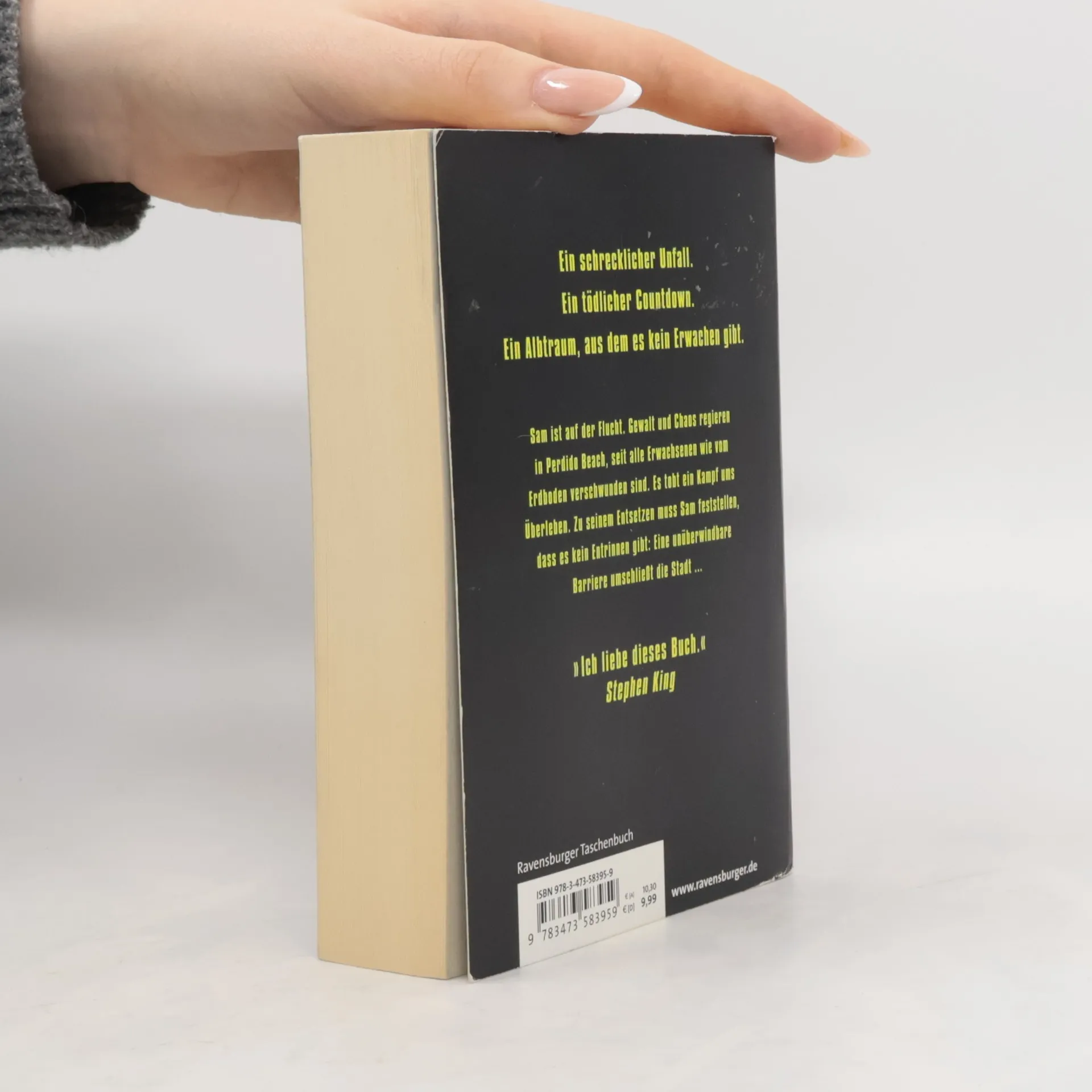 Das Leben in der beschaulichen Kleinstadt Perdido Beach wird für Sam und seine Freunde zum Albtraum: Plötzlich verschwinden alle Bewohner spurlos, die älter als fünfzehn Jahre sind. Eine gigantische Mauer umschließt die Stadt. Es gibt kein Entrinnen, nur die nackte Angst, denn schon bald ziehen marodierende Banden durch die Straßen. Ein erbitterter Kampf ums Überleben beginnt - und ein Kampf gegen die Zeit: Sam wird in 299 Stunden selbst fünfzehn ...