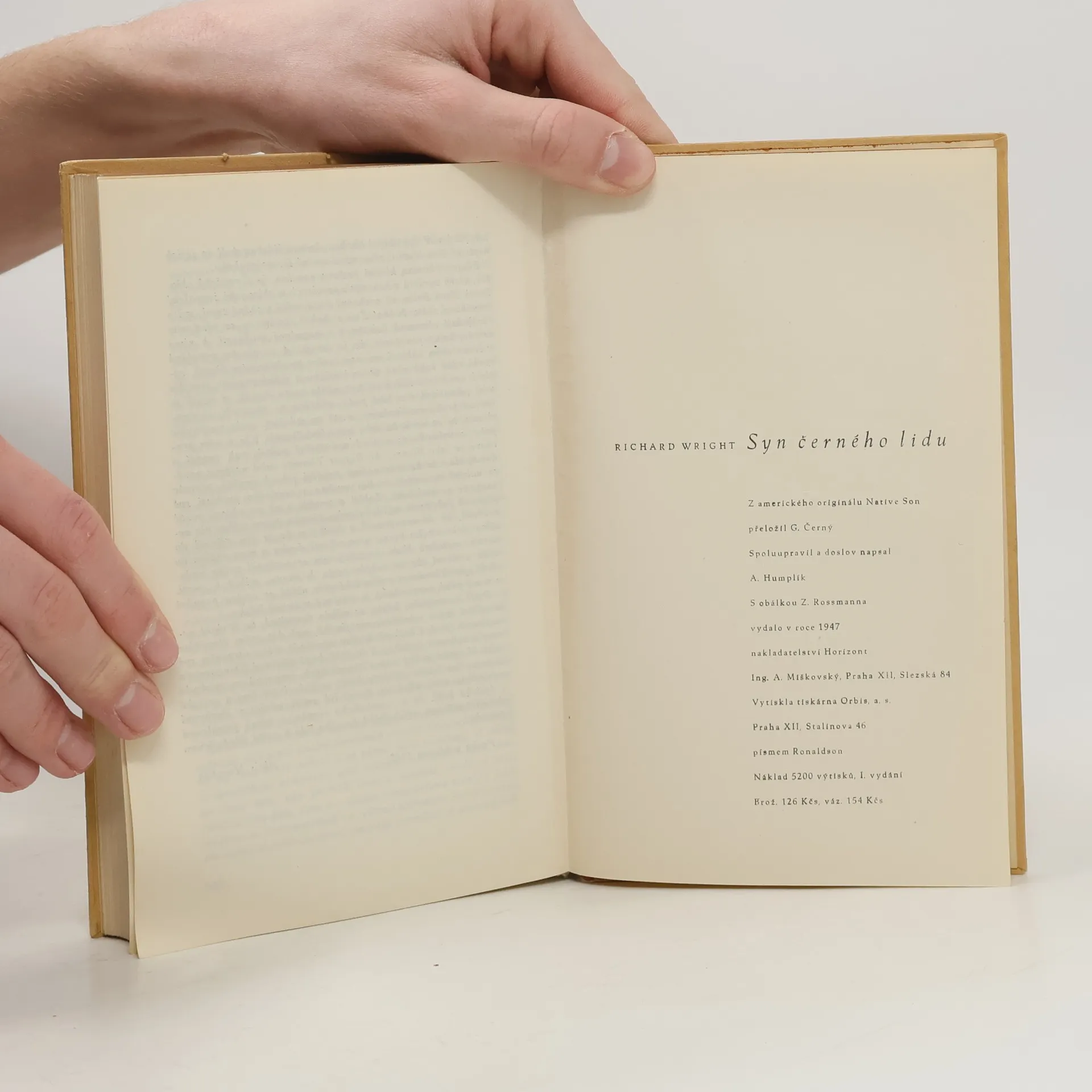 Syn černého lidu, Richard Wright, Gothard Černý, Alois Humplík