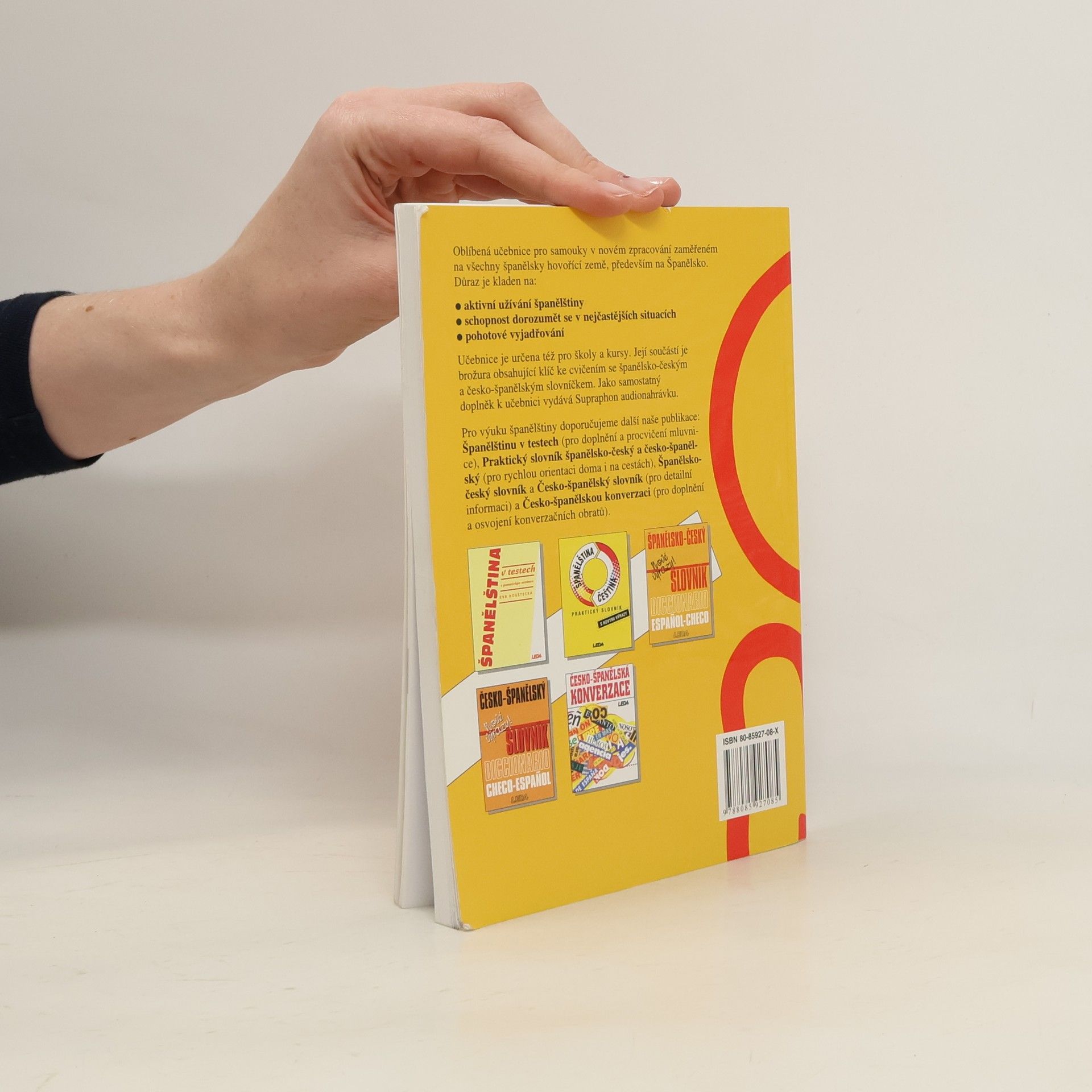 Oblíbená učebnice pro samouky v novém zpracování zaměřené na všechny španělsky hovořící země, především na Španělsko. Důraz je kladen na: . aktivní užívání španělštiny . schopnost dorozumět se v nejčastějších situacích . pohotové vyjadřování Učebnice je určena též pro školy a kursy. Její součástí je brožura obsahující klíč ke cvičením (119 s.) se španělsko-českým a česko-španělským slovníčkem. Jako samostatný doplněk k učebnici vydává Supraphon audionahrávku.