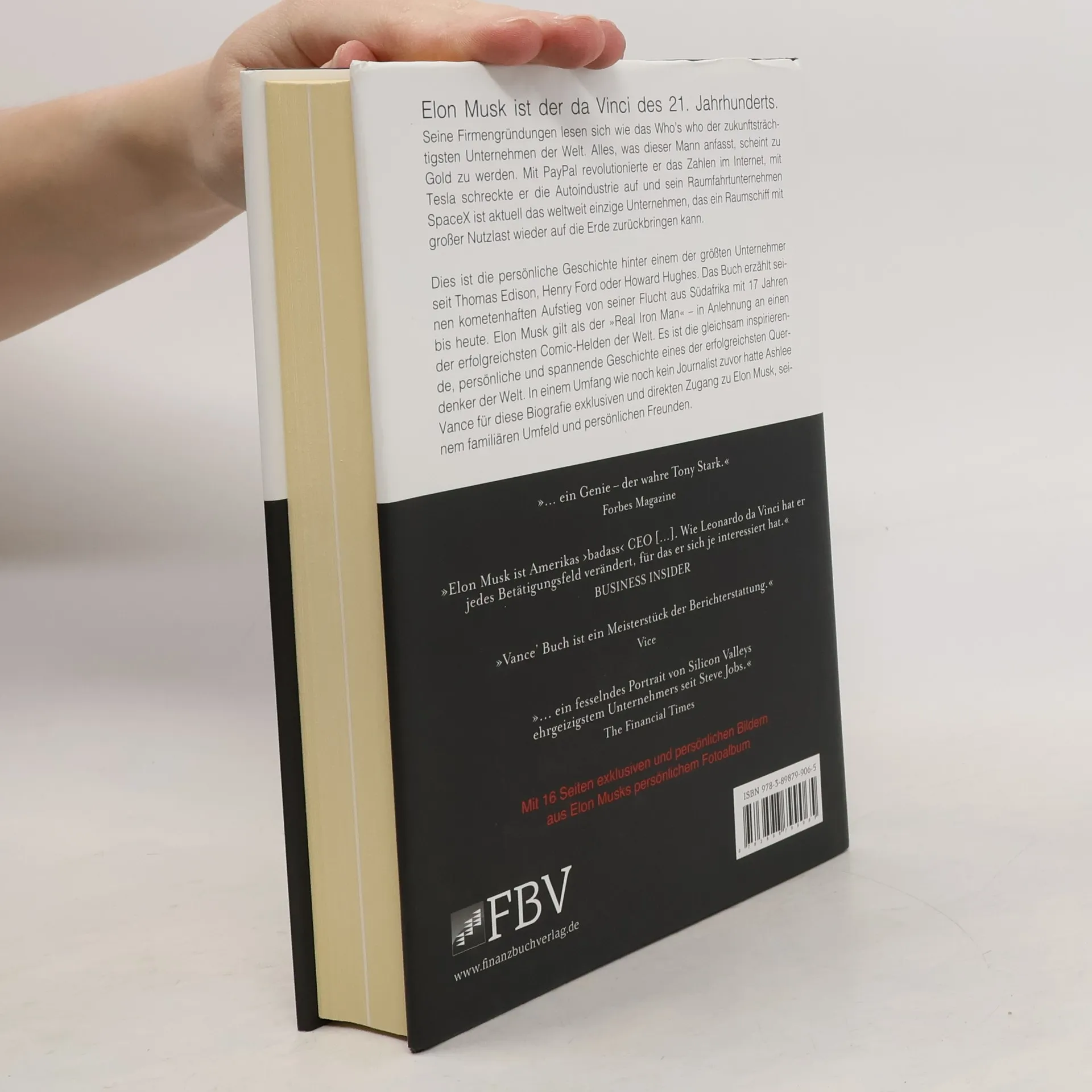 Elon Musk ist der da Vinci des 21. Jahrhunderts. Seine Firmengründungen lesen sich wie das Who’s who der zukunftsträchtigsten Unternehmen der Welt. Alles, was dieser Mann anfasst, scheint zu Gold zu werden. Mit PayPal revolutionierte er das Zahlen im Internet, mit Tesla schreckte er die Autoindustrie auf und sein Raumfahrtunternehmen SpaceX ist aktuell das weltweit einzige Unternehmen, das ein Raumschiff mit großer Nutzlast wieder auf die Erde zurückbringen kann. Dies ist die persönliche Geschichte hinter einem der größten Unternehmer seit Thomas Edison, Henry Ford oder Howard Hughes. Das Buch erzählt seinen kometenhaften Aufstieg von seiner Flucht aus Südafrika mit 17 Jahren bis heute. Elon Musk gilt als der »Real Iron Man« – in Anlehnung an einen der erfolgreichsten Comichelden der Welt. Es ist die gleichsam inspirierende, persönliche und spannende Geschichte eines der erfolgreichsten Querdenker der Welt. In einem Umfang wie noch kein Journalist zuvor hatte Ashlee Vance für diese Biografie exklusiven und direkten Zugang zu Elon Musk, seinem familiären Umfeld und persönlichen Freunden. Mit 16 Seiten exklusiven und persönlichen Bildern aus Elon Musks persönlichem Fotoalbum.