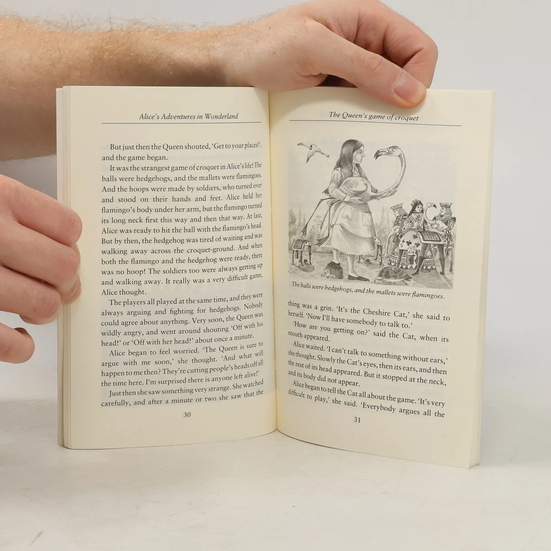 There, on top of the mushroom, was a large caterpillar, smoking a pipe. After a while the Caterpillar took the pipe out of its mouth and said to Alice in a slow, sleepy voice, 'Who are you?' What strange things happen when Alice falls down the rabbit-hole and into Wonderland! She has conversations with the Caterpillar and the Cheshire Cat, goes to the Mad Hatter's tea party, plays croquet with the King and Queen of Hearts...