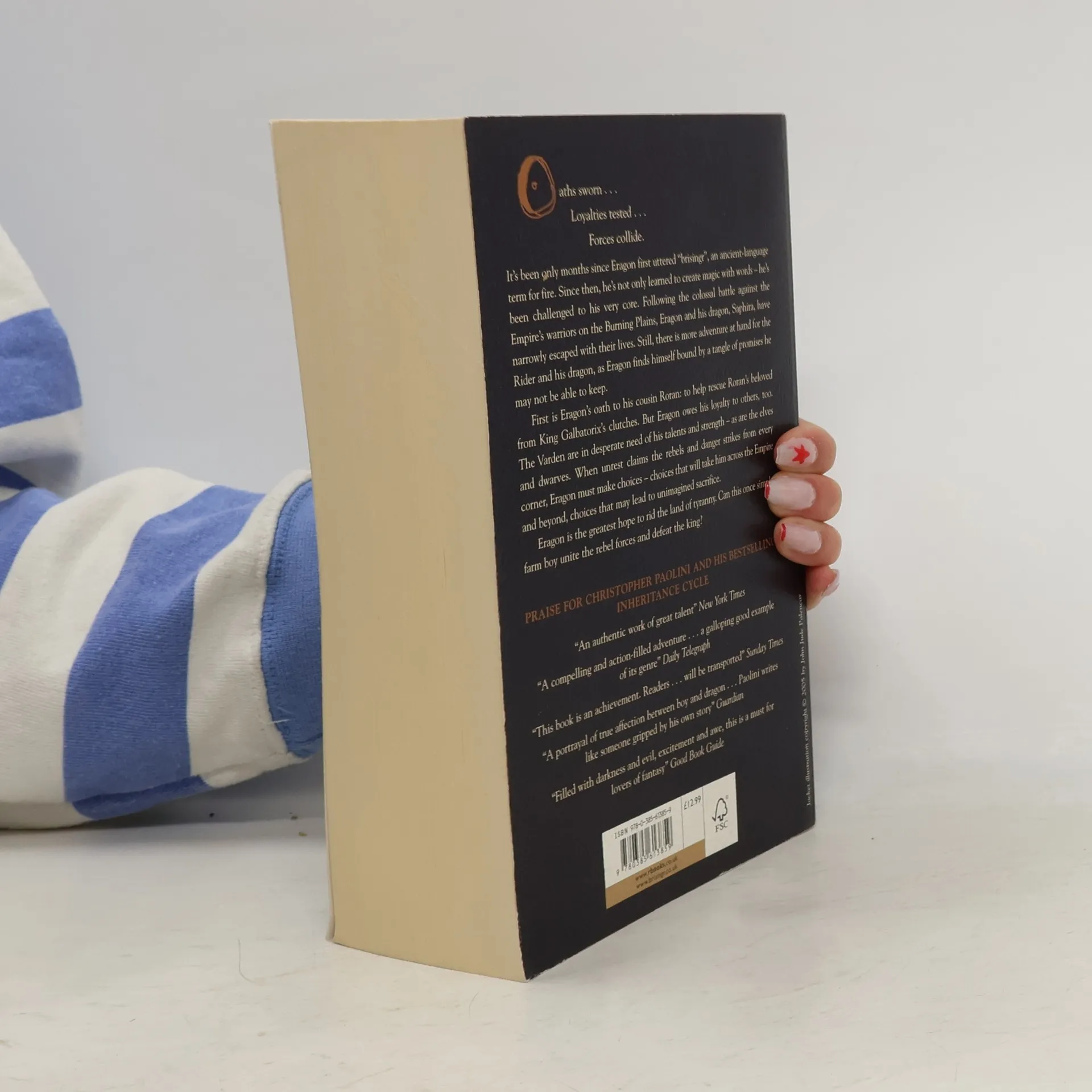 Oaths sworn . . . Loyalties tested . . . Forces collide. Eragon and his dragon, Saphira, have narrowly escaped with their lives after the colossal battle against the Empire's warriors on the Burning Plains. Now Eragon finds himself bound by promises he may not be able to keep. He must help rescue his cousin Roran's beloved from King Galbatorix's clutches. But he also owes his loyalty to the Varden, the elves and the dwarves, who are in desperate need of his talents and strength. Eragon in the greatest hope to rid the land of tyranny. Can this once simple farm boy unite the rebel forces and defeat the king?