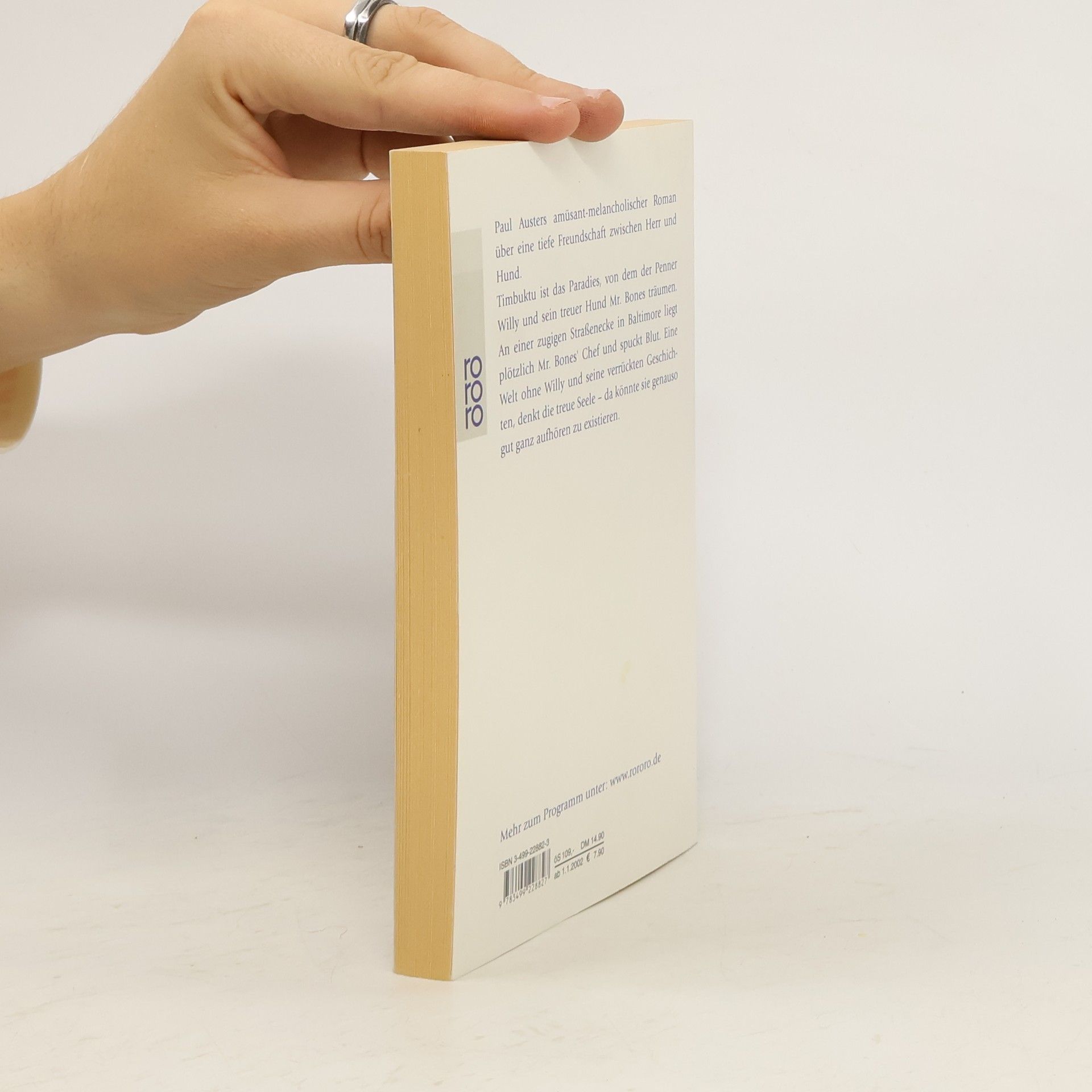 Aufzeichnungen eines Hundes Mr. Bones, die spitzohrige Promenadenmischung, sieht die Welt durch die scharfen Augen dessen, der sie stets von unten hat betrachten müssen. Und er ist nicht auf den Mund, Pardon, auf die Schnauze gefallen. Seine weisen Erkenntnisse über das Hundeleben, das wir alle führen, sind ebenso amüsant wie traurig — denn in ihrem augenzwinkernden Humor ist ihnen jede Sentimentalität fremd. «Austers berührendstes, gefühlvollstes Buch.» ( New York Times )