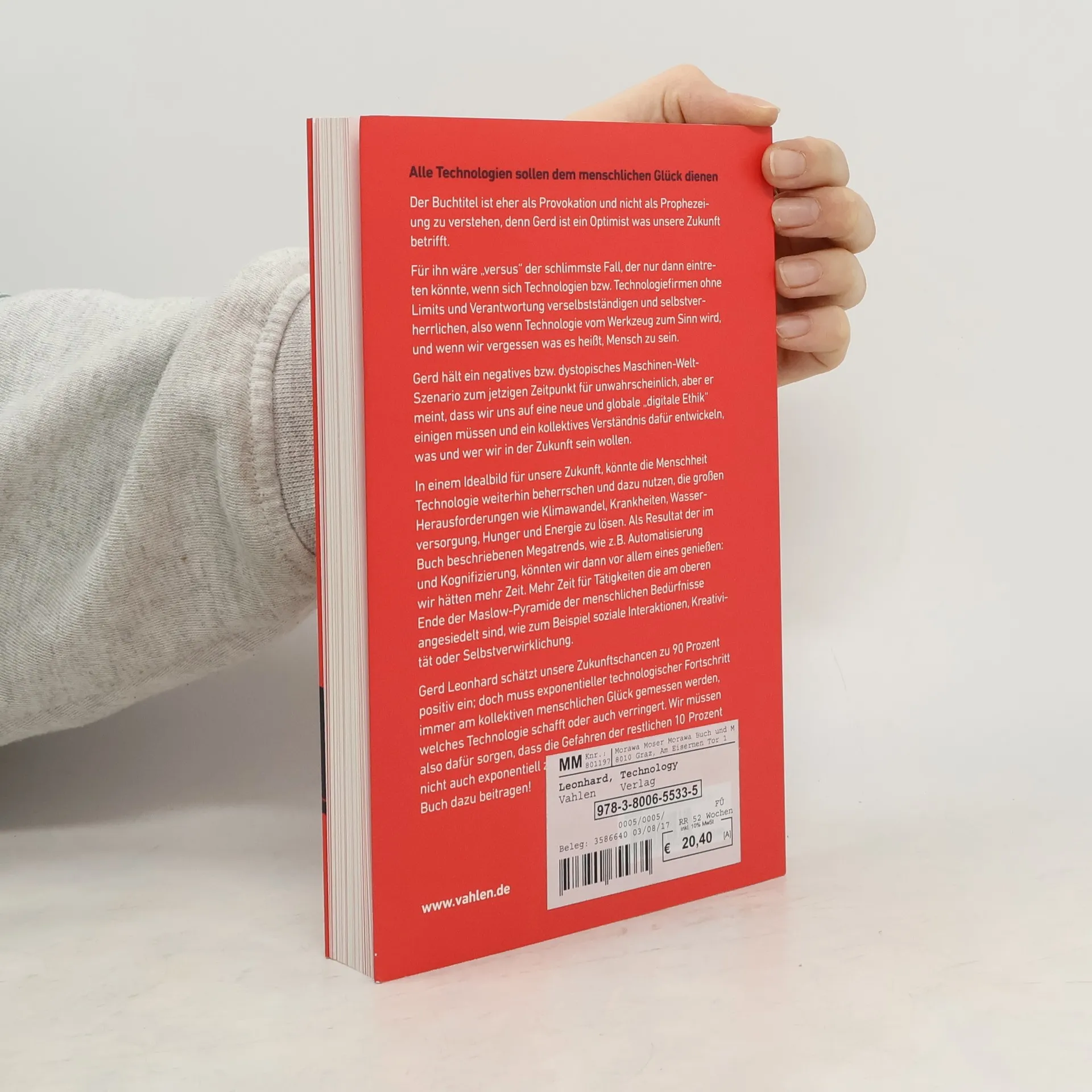 Alle Technologien sollen dem menschlichen Glück dienen. Der Titel ist eher provokant als prophetisch, denn der Autor ist optimistisch bezüglich unserer Zukunft. Für ihn wäre ein Szenario, in dem Technologie und Technologiefirmen ohne Verantwortung agieren, der schlimmste Fall. Er glaubt, dass wir uns auf eine neue, globale „digitale Ethik“ einigen müssen, um ein gemeinsames Verständnis darüber zu entwickeln, was wir in der Zukunft sein wollen. In einem idealen Zukunftsbild könnte die Menschheit Technologie nutzen, um große Herausforderungen wie Klimawandel, Krankheiten, Wasserversorgung, Hunger und Energie zu bewältigen. Die im Buch beschriebenen Megatrends, wie Automatisierung und Kognifizierung, könnten uns mehr Zeit für wichtige menschliche Bedürfnisse geben, wie soziale Interaktionen, Kreativität und Selbstverwirklichung. Der Autor schätzt die Chancen für unsere Zukunft positiv ein, sieht jedoch die Notwendigkeit, den exponentiellen technologischen Fortschritt am kollektiven menschlichen Glück zu messen. Es ist entscheidend, dass die Gefahren der restlichen 10 Prozent nicht ebenfalls exponentiell zunehmen. Dieses Buch könnte dazu beitragen, diese Diskussion zu fördern.