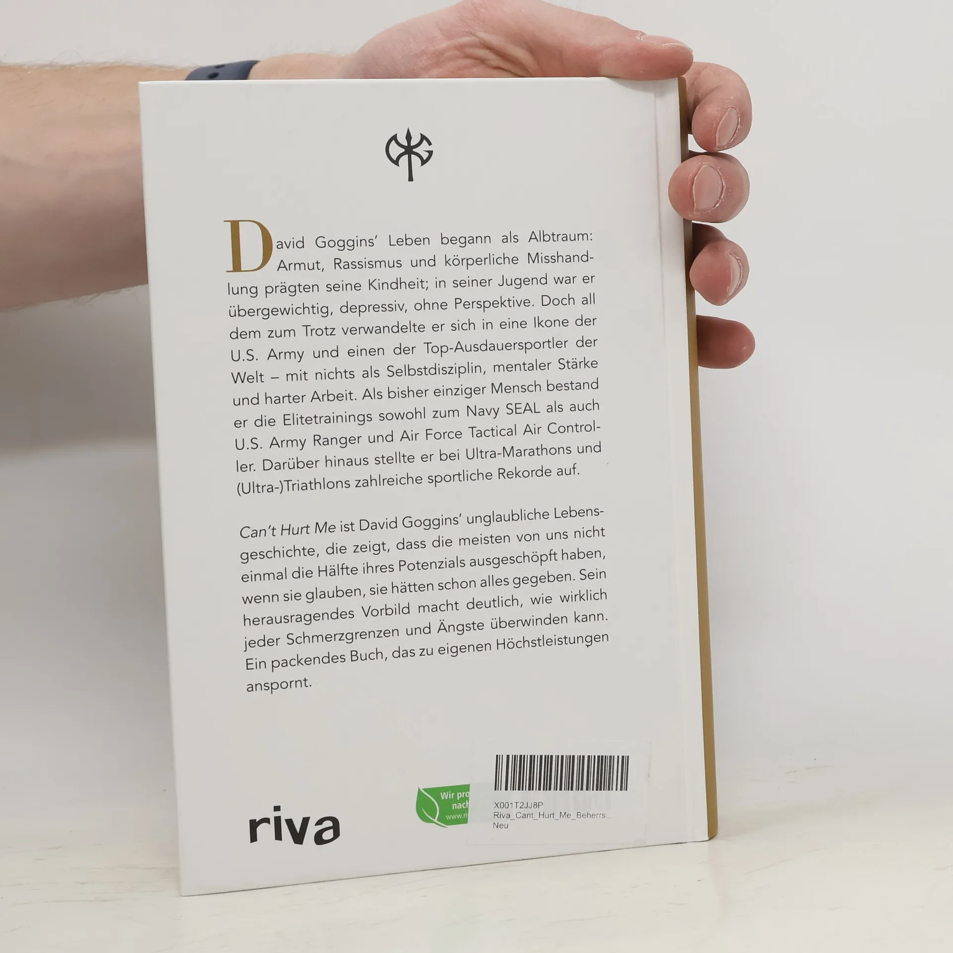 Für David Goggins war die Kindheit ein Albtraum – Armut, Vorurteile und körperliche Misshandlung verfolgten ihn bis in seine Träume. Doch durch Selbstdisziplin, mentale Stärke und harte Arbeit verwandelte er sich vom depressiven, übergewichtigen Jugendlichen ohne Perspektive in eine Ikone der U. S. Army und einen der Top-Ausdauersportler der Welt. Er ist der Einzige, der je das Elitetraining sowohl zum Navy SEAL als auch U. S. Army Ranger und Air Force Tactical Air Controller bestand, außerdem stellte er zahlreiche Ausdauerrekorde auf. In »Can’t Hurt Me« erzählt er seine wahrlich erstaunliche Lebensgeschichte und zeigt, dass die meisten von uns nicht einmal die Hälfte ihres Potenzials ausschöpfen. Goggins bezeichnet dies als 40-Prozent-Regel. Sein herausragendes Beispiel veranschaulicht hingegen, wie es jedem gelingen kann, das zu ändern und Schmerzgrenzen und Ängste zu überwinden.