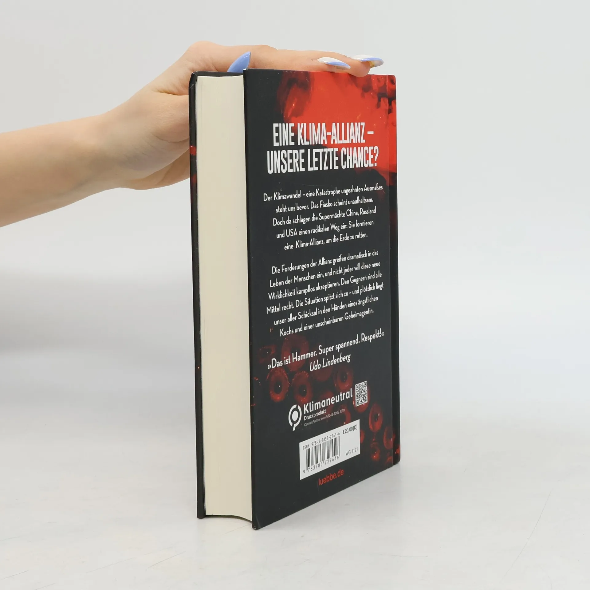 Eine Klima-Allianz - unsere letzte Chance? Der Klimawandel - eine Katastrophe ungeahnten Ausmaßes steht uns bevor. Verändert unsere Erde. Verändert unser aller Leben. Das Fiasko scheint unaufhaltsam. Bis die drei Supermächte China, Russland und die USA einen radikalen Weg einschlagen. Doch wird diese starke Klima-Allianz das Ruder noch herumreißen? Die Maßnahmen der Allianz greifen gravierend in das Leben der Menschen ein, und nicht jeder will diese neue Wirklichkeit kampflos akzeptieren. Alle Mittel sind den Gegnern recht, um ihre ökonomischen und machtpolitischen Interessen zu verteidigen. Die Situation spitzt sich dramatisch zu, und plötzlich liegt das Schicksal der Erde in den Händen eines schüchternen Kochs und einer unscheinbaren Geheimagentin. „Das ist Hammer. Super spannend. Respekt!“ Udo Lindenberg