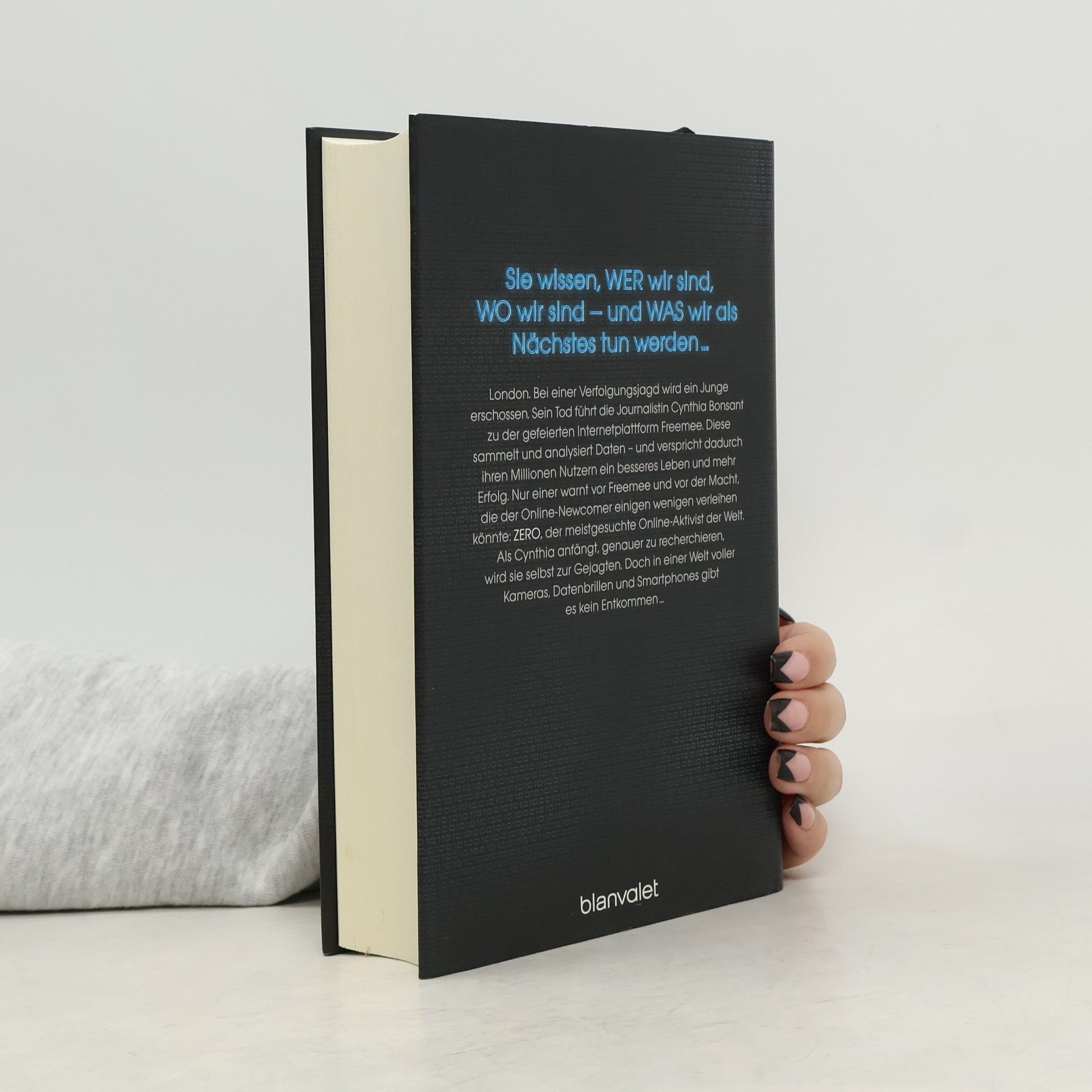 Wer sich im Netz bewegt, für den gibt es kein Entkommen Sie wissen, WER wir sind, WO wir sind - und WAS wir als Nächstes tun werden! London. Bei einer Verfolgungsjagd wird ein Junge erschossen. Sein Tod führt die Journalistin Cynthia Bonsant zu der gefeierten Internetplattform Freemee. Diese sammelt und analysiert Daten – und verspricht dadurch ihren Millionen Nutzern ein besseres Leben und mehr Erfolg. Nur einer warnt vor Freemee und vor der Macht, die der Online-Newcomer einigen wenigen verleihen könnte: ZERO, der meistgesuchte Online-Aktivist der Welt. Als Cynthia anfängt, genauer zu recherchieren, wird sie selbst zur Gejagten. Doch in einer Welt voller Kameras, Datenbrillen und Smartphones gibt es kein Entkommen … Hochaktuell und bedrohlich: Der gläserne Mensch unter Kontrolle _