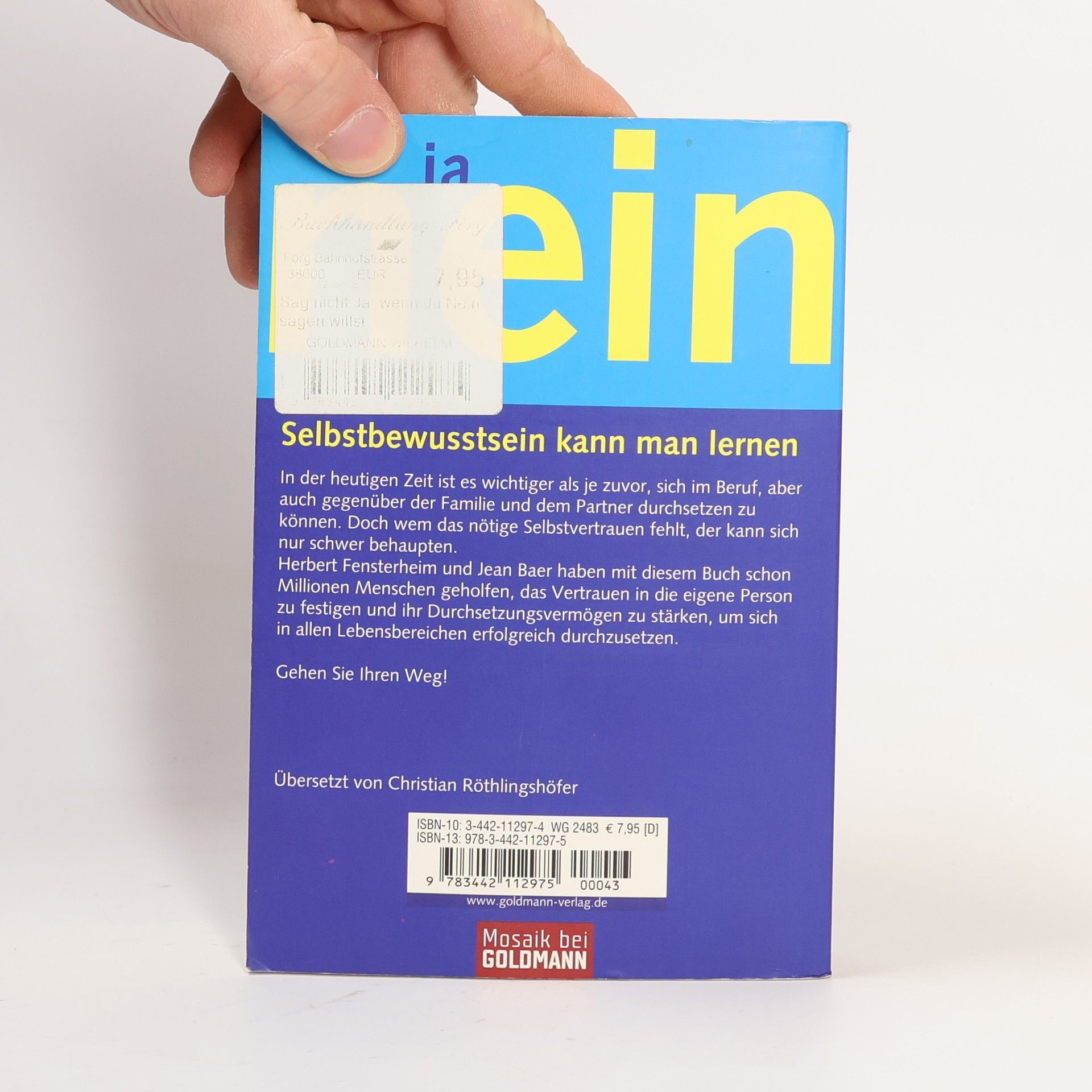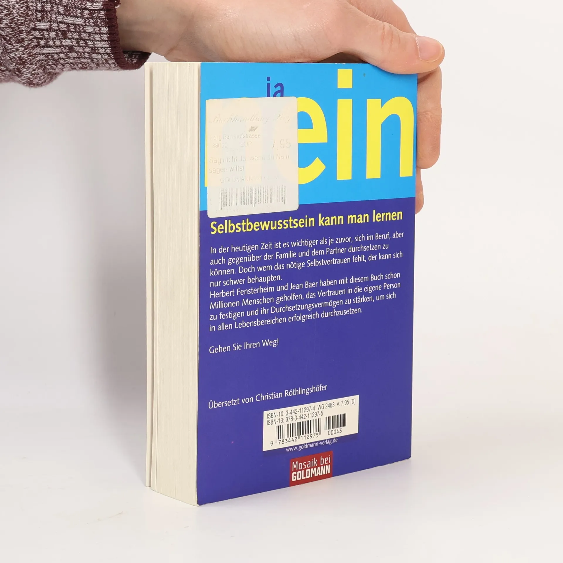 Seit Jahrzenten erfolgreich: das Standardwerk zum Thema Selbstbewusstsein Selbstsicherheit kann man lernen – mit dem Training des amerikanischen Psychotherapeuten Professor Herbert Fensterheim und der Journalistin Jean Baer. Das Programm, mit dem sie schon Millionen Menschen geholfen haben, demonstriert, wie man das Vertrauen in die eigene Person stärkt und sich durchsetzt – im Beruf, in der Liebe, im Familienkreis, in der Gesellschaft.