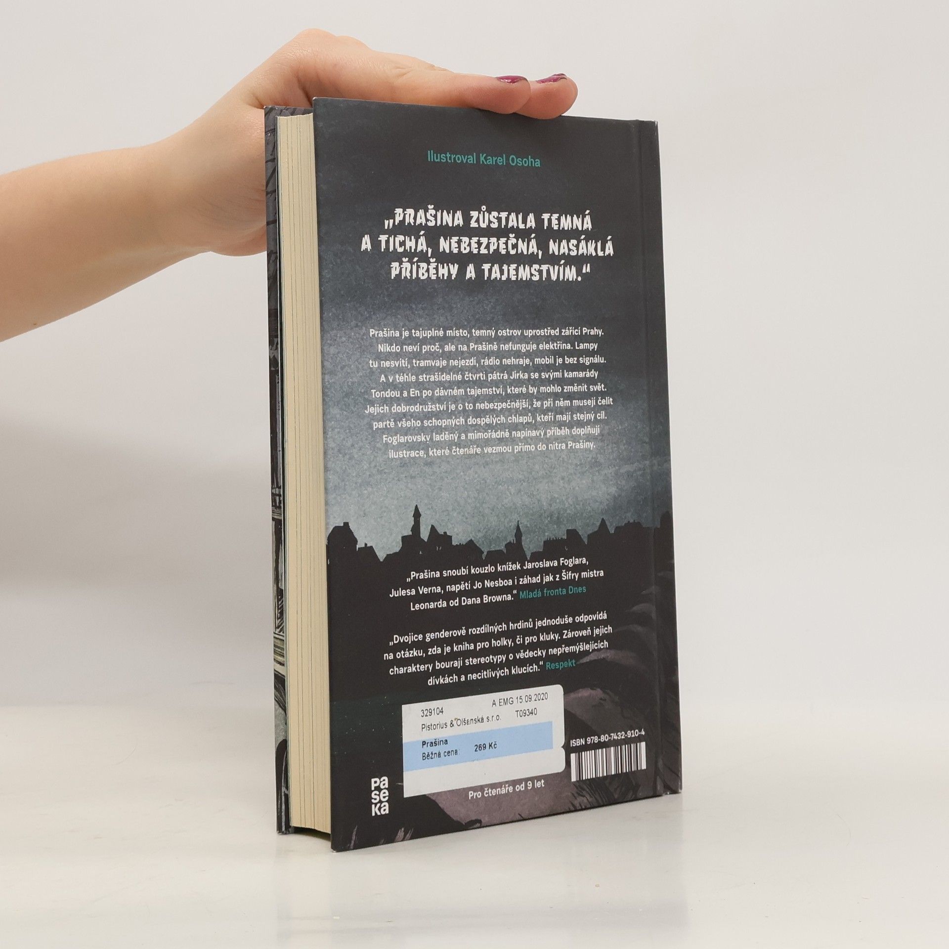Prašina je tajuplné místo, temný ostrov uprostřed zářící Prahy. Nikdo neví proč, ale na Prašině nefunguje elektřina. Lampy tu nesvítí, tramvaje nejezdí, rádio nehraje, mobil je bez signálu. A v téhle strašidelné čtvrti pátrá Jirka se svými kamarády Tondou a En po dávném tajemství, které by mohlo změnit svět. Jejich dobrodružství je o to nebezpečnější, že při něm musejí čelit partě všeho schopných dospělých chlapů, kteří mají stejný cíl. Foglarovsky laděný a mimořádně napínavý příběh doplňují ilustrace, které čtenáře vezmou přímo do nitra Prašiny.