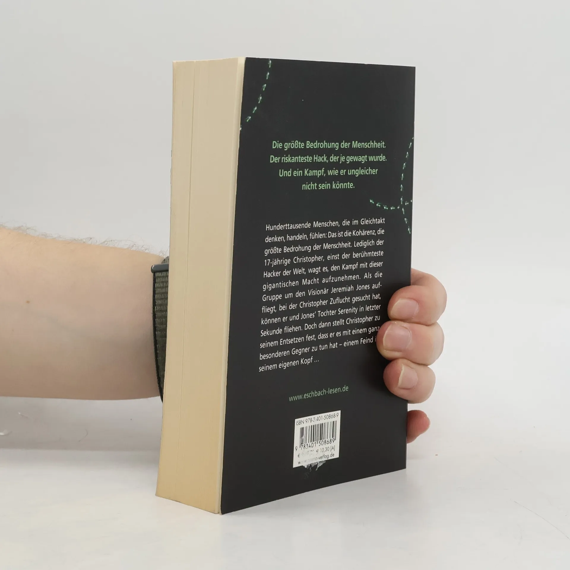 Hunderttausende Menschen, die im Gleichtakt denken, handeln, fühlen: Das ist die Kohärenz, die größte Bedrohung der Menschheit. Nur der 17-jährige Christopher, einst der berühmteste Hacker der Welt, wagt es, den Kampf mit dieser gigantischen Macht aufzunehmen. Als die Gruppe um den Visionär Jeremiah Jones auffliegt, bei der Christopher Zuflucht gesucht hat, können er und Jones’ Tochter Serenity in letzter Sekunde fliehen. Doch dann stellt Christopher zu seinem Entsetzen fest, dass er es mit einem ganz besonderen Gegner zu tun hat - einem Feind in seinem eigenen Kopf …