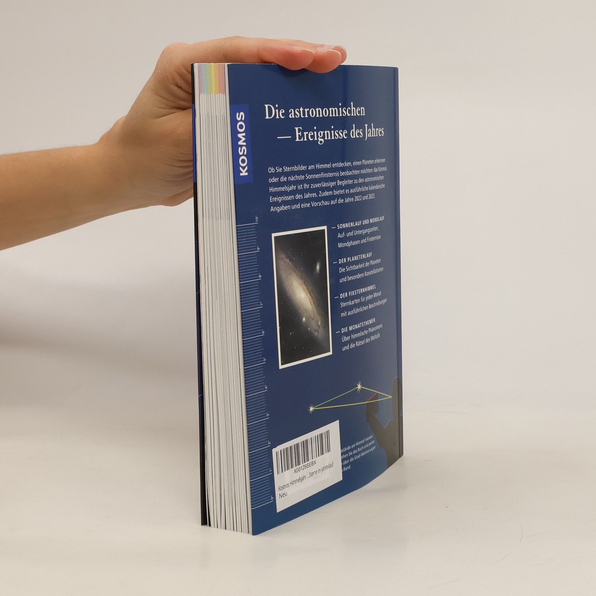 Sternbilder am Himmel entdecken, Planeten erkennen oder die nächste Mondfinsternis beobachten – das KOSMOS Himmelsjahr ist der zuverlässige Wegweiser zu den astronomischen Ereignissen des Jahres. Kalenderdaten: Der Beginn der Jahreszeiten, alle Fest- und Feiertage sowie chronologische Angaben. Sonne und Mond: Auf- und Untergangszeiten, Stellung im Tierkreis, tägliche Mondphasen und Finsternisse. Planetenlauf: Bahn der Planeten durch die Sternbilder, wann man sie sehen kann und wo sie sich treffen. Sterne und Sternbilder: Mit übersichtlichen Sternkarten, ausführlichen Beschreibungen und Fernrohrtipps. Monatsthemen: spannende Berichte über astronomische Phänomene im Alltag und die Rätsel des Weltalls. Himmlisches Highlight im Jahr 2021: Die partielle Sonnenfinsternis am 10. Juni.
