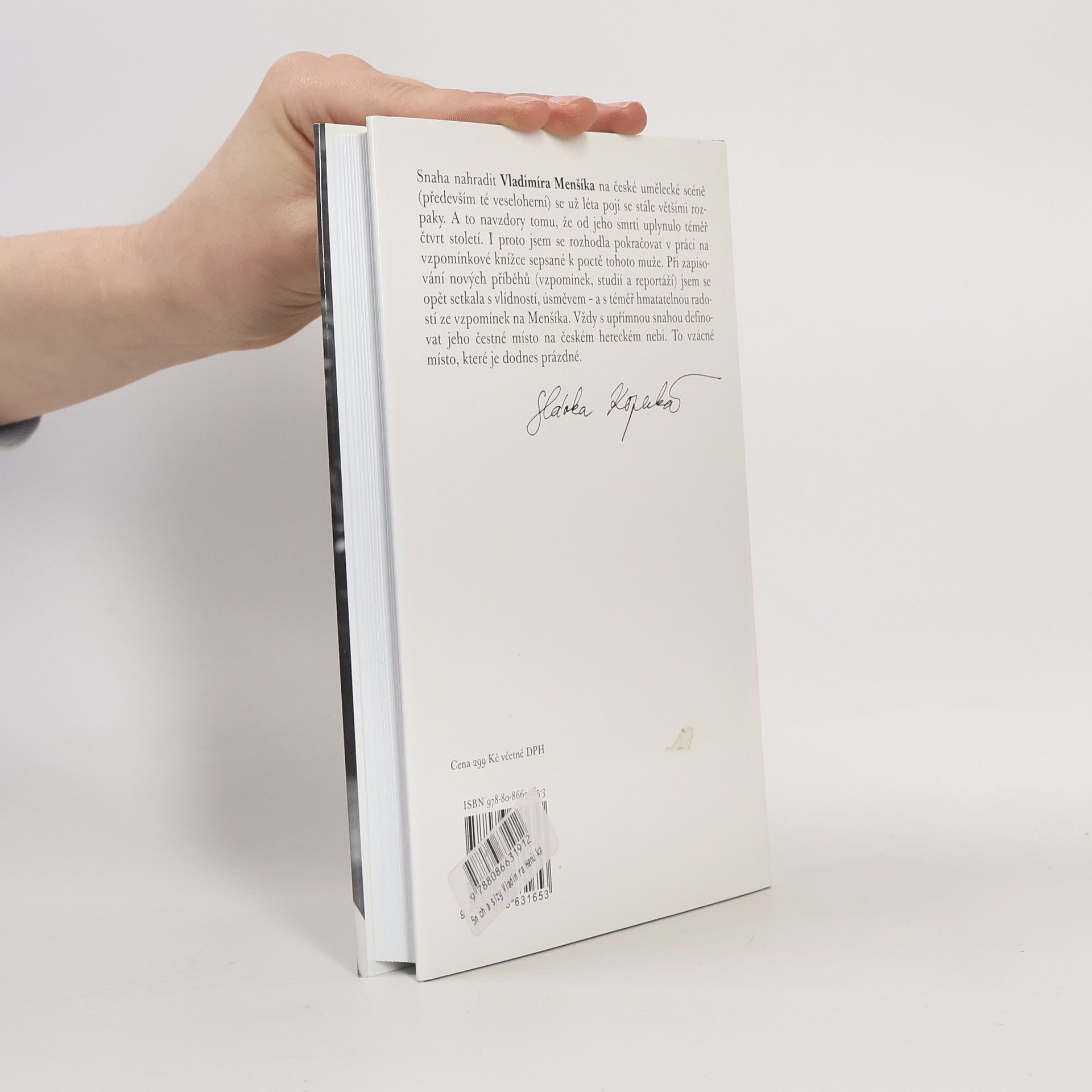 Snaha nahradit Vladimíra Menšíka na české umělecké scéně (především té veseloherní) se už léta pojí se stále většími rozpaky. A to navzdory tomu, že od jeho smrti uplynulo už osmnáct let. I proto jsem se autorka rozhodla pokračovat v práci na vzpomínkové knížce sepsané k poctě tohoto muže. Při zapisování nových příběhů (vzpomínek, studií a reportáží) jsem opět setkala s vlídností, úsměvem - a s téměř hmatatelnou radostí ze vzpomínek na Menšíka. Vždy s upřímnou snahou definovat jeho čestné místo na českém hereckém nebi. To vzácné místo, které je dodnes prázdné
