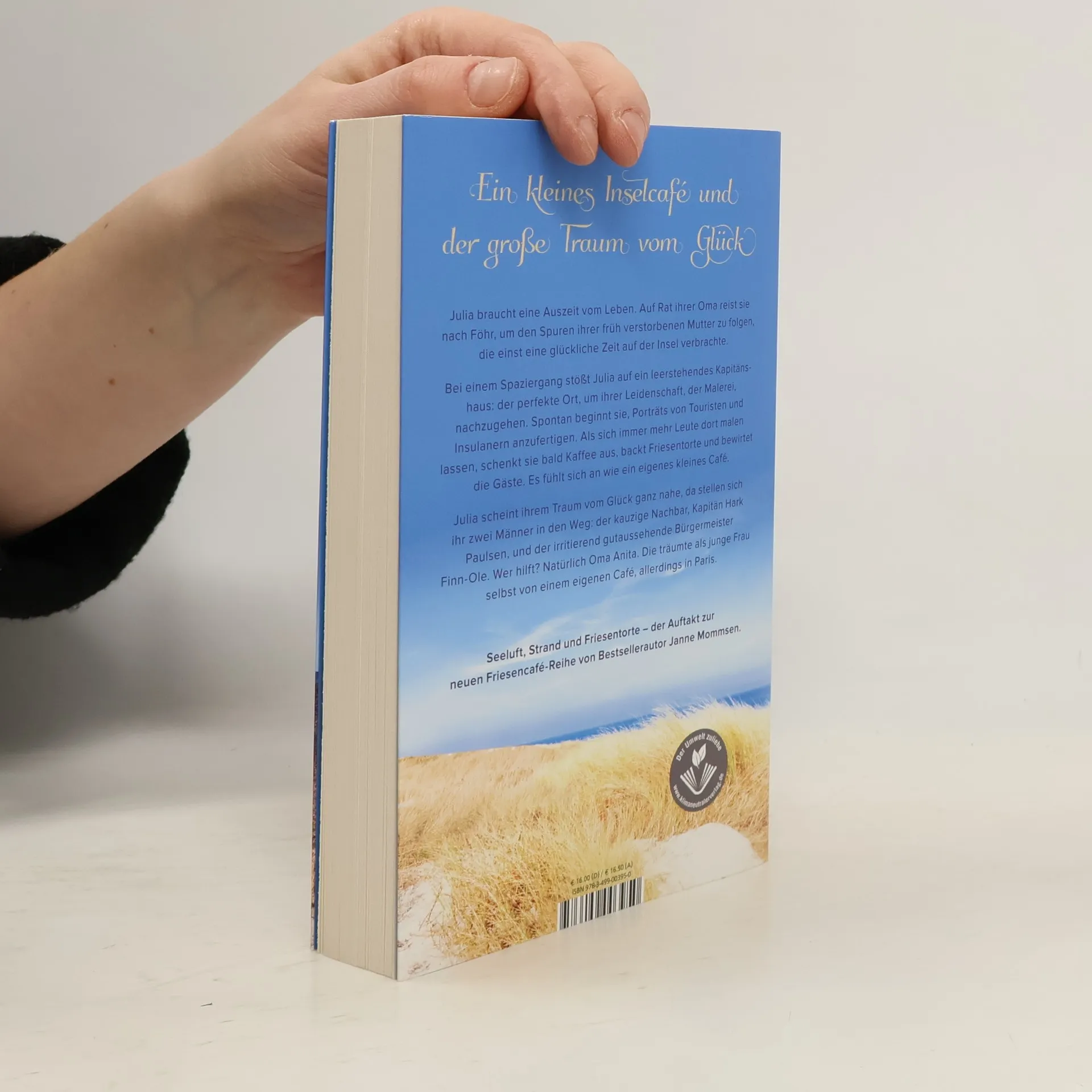 Seeluft, Strand und Friesentorte – der Auftakt zur neuen Friesencafé-Reihe von Bestsellerautor Janne Mommsen. Julia braucht eine Auszeit vom Leben. Auf Rat ihrer Oma reist sie nach Föhr, um den Spuren ihrer früh verstorbenen Mutter zu folgen, die einst eine glückliche Zeit auf der Insel verbrachte. Bei einem Spaziergang stößt Julia auf ein leerstehendes Kapitänshaus: der perfekte Ort, um ihrer Leidenschaft, der Malerei, nachzugehen. Spontan beginnt sie, Porträts von Touristen und Insulanern anzufertigen. Als sich immer mehr Leute dort malen lassen, schenkt sie bald Kaffee aus, backt Friesentorte und bewirtet die Gäste. Es fühlt sich an wie ein eigenes kleines Café. Julia scheint ihrem Traum vom Glück ganz nahe, da stellen sich ihr zwei Männer in den Weg: der kauzige Nachbar, Kapitän Hark Paulsen, und der irritierend gutaussehende Bürgermeister Finn-Ole. Wer hilft? Natürlich Oma Anita. Die träumte als junge Frau selbst von einem eigenen Café, allerdings in Paris.