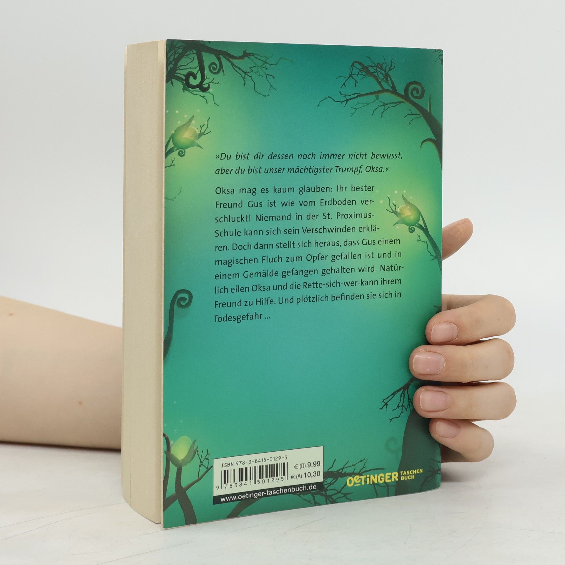 Oksa gigantisch - und noch spannender! Oksa kann es kaum glauben: Ihr bester Freund Gus ist auf einmal wie vom Erdboden verschluckt! Niemand kann sich sein Verschwinden am helllichten Tag mitten in der St. Proximus-Schule erklären. Doch dann stellt sich heraus, dass Gus offenbar einem magischen Fluch zum Opfer gefallen ist und in einem Gemälde gefangen gehalten wird! Natürlich eilen Oksa und die Rette-sich-wer-kann ihrem Freund zu Hilfe. Bei dem Unterfangen, ihn zu retten, gerät die Gruppe in Todesgefahr. Dass der geheimnisvolle Tugdual mit von der Partie ist, macht die Sache für Oksa noch komplizierter, denn immer stärker verwirrt sie der finstere Junge ... Der zweite Band der packenden Abenteuerserie mit hinreißenden Figuren: Oksa, ihre Freunde und die liebenswerten, manchmal sehr verrückten Begleiter!