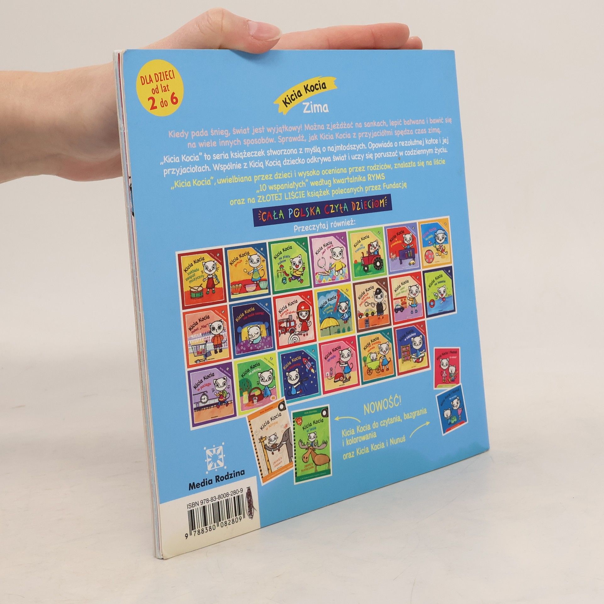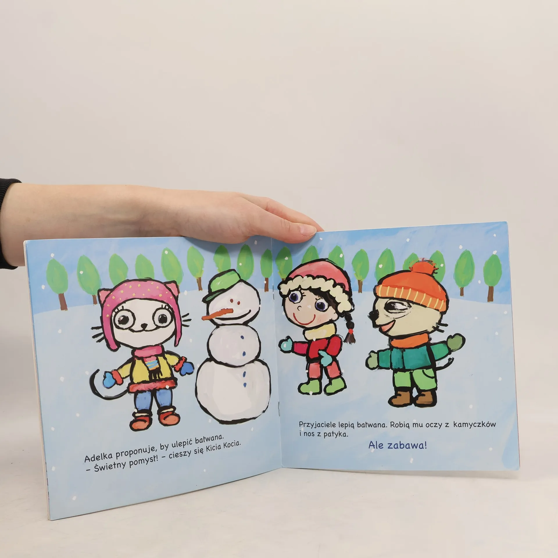 Znana i lubiana kotka Kicia Kocia i jej przyjaciele wracaja Kicia Kocia Zima to kolejna czesc niesamowitych przygod bohaterow tej serii Tym razem przyjaciele wybieraja sie na sanki Nie boja sie zimna wiatru i sniegu po kolana Wspolnie sie bawia wdrapuja sie na gorke zjezdzaja graja w hokeja na lodzie lepia balwana i rzucaja sie sniezkami Ksiazka z pewnoscia zachwyci malych czytelnikow ktorzy wraz kotka i innymi bohaterami przyjemnie spedza zimowy czas Pobawcie sie razem z nimi a mroz nie bedzie wam straszny