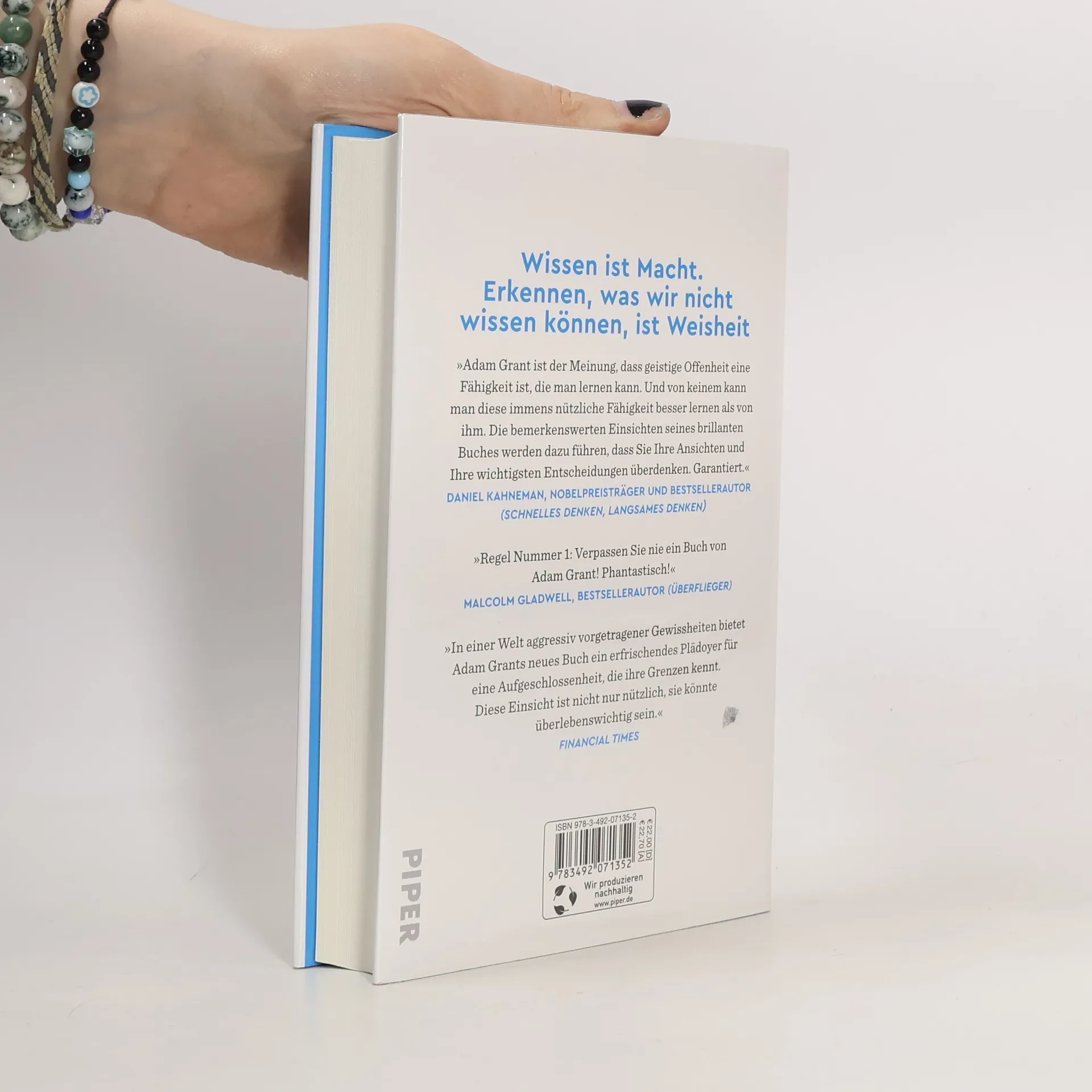 Wer noch mal nachdenkt, geht schlauer durchs Leben Intelligenz wird üblicherweise verstanden als die Fähigkeit, zu denken und zu lernen. Doch in einer Welt, die sich rasant verändert, brauchen wir etwas ganz anderes genauso dringend: die Fähigkeit, Gedachtes zu überdenken und sich von Erlerntem wieder zu lösen. Anhand zahlreicher Beispiele aus dem täglichen Leben zeigt der internationale Bestsellerautor Adam Grant: Nur wer die Komfortzone fester Überzeugungen verlässt, wer Zweifel und unterschiedliche Ansichten zulässt, ohne sich in seinem Ego bedroht zu fühlen, eröffnet sich die großartige Chance, wirklich neue Erkenntnisse zu gewinnen. Wissen ist Macht. Erkennen, was wir nicht wissen können, ist Weisheit »Adam Grant ist der Meinung, dass geistige Offenheit eine Fähigkeit ist, die man lernen kann. Und von keinem kann man diese immens nützliche Fähigkeit besser lernen als von ihm. Die bemerkenswerten Einsichten seines brillanten Buches werden dazu führen, dass Sie Ihre Ansichten und Ihre wichtigsten Entscheidungen überdenken. Garantiert.« Daniel Kahneman, Nobelpreisträger und Bestsellerautor (Schnelles Denken, langsames Denken)