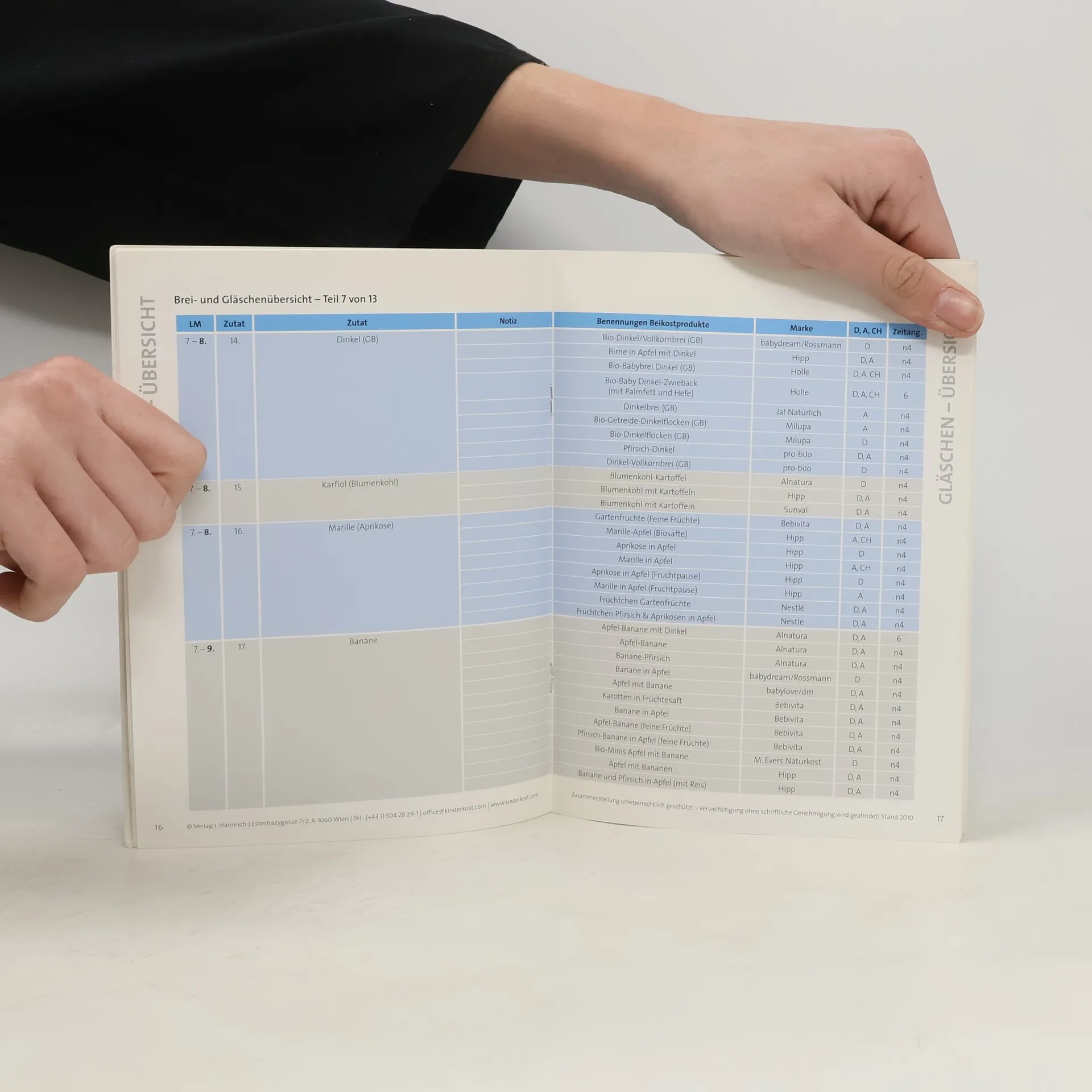 DER Ernährungsleitfaden für das gesamte 1. Lebensjahr mit wertvollen Hinweisen zu Stillen, Flaschennahrung, Beikostbeginn, Gläschenauswahl (selektierte Produkte des deutschen, österreichischen und schweizer Marktes) und Allergieprävention. 6 Monate Vollstillen wird von namhaften Gremien (WHO, ESPGAN) als wünschenswertes Ziel gesehen. Doch manchmal weicht die persönliche Entwicklung des Kindes davon ab. Beikostpläne für den Beikostbeginn „nach Bedarf“ geben eine praxisnahe, fundierte und unabhängige Orientierungshilfe. In unserem Gläschenfahrplan finden Sie einen Überblick über die am Markt erhältlichen Beikostprodukte, der Sie bei der Auswahl geeigneter Produkte unterstützt und gerade bei erhöhtem Allergierisiko eine wertvolle Hilfe ist. Wir empfehlen das Buch „Rezepte und Tipps für Babys Beikost“ als Ergänzung für diejenigen, die Beikostbreie selber zubereiten wollen.