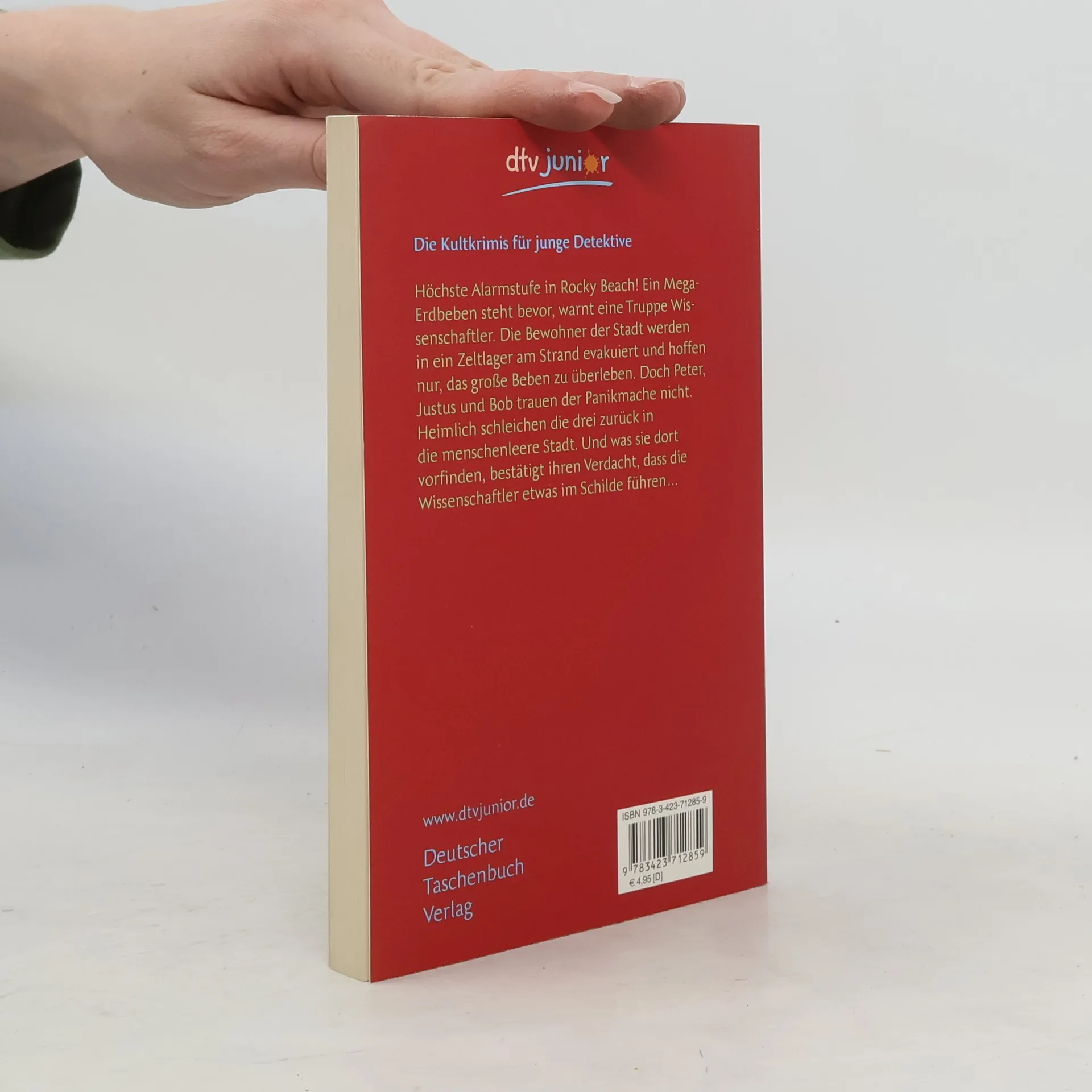 Aufregung in Rocky Beach! Rocky Beach wird von einem leichten Erdbeben erschüttert. Keine Panik, denken die drei ??? ebenso wie die anderen Bewohner dieser erdbebenerprobten Gegend. Als aber kurz danach ein Wissenschaftlerteam in der Stadt auftaucht und vor einem Beben mit bis zu 7,5 Stärken warnt, wissen alle, was das bedeutet: Das seit Jahren prophezeite ›Big One‹, das die ganze Westküste zerstören könnte. Der Strom wird abgestellt, die Stadt vollkommen abgeriegelt und die Bevölkerung in eine Zeltstadt am Strand evakuiert. Doch nach einem Blick in den Lastwagen der Wissenschaftler, angeblich voll mit seismologischen Messgeräten, werden die drei ??? misstrauisch - der Wagen ist völlig leer. Justus, Peter und Bob können sich auf die Ladefläche schmuggeln und gelangen so in das gesperrte Gebiet. Und tatsächlich: Die Wissenschaftler, die nun als einzige Zugang zu der evakuierten Stadt haben, sind Ganoven.