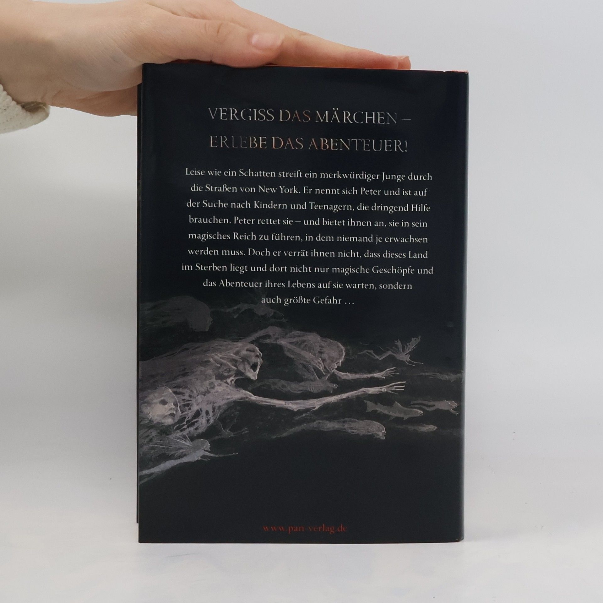 Vergiss das Märchen - erlebe das Abenteuer Leise wie ein Schatten streift ein merkwürdiger Junge durch die Straßen von New York. Er nennt sich Peter und ist auf der Suche nach Kindern und Teenagern, die dringend Hilfe brauchen. Peter rettet sie – und bietet ihnen an, sie in sein magisches Reich zu führen, in dem niemand je erwachsen werden muss. Doch er verrät ihnen nicht, dass dieses Land im Sterben liegt und dort nicht nur magische Geschöpfe und das Abenteuer ihres Lebens auf sie warten, sondern auch größte Gefahr …
