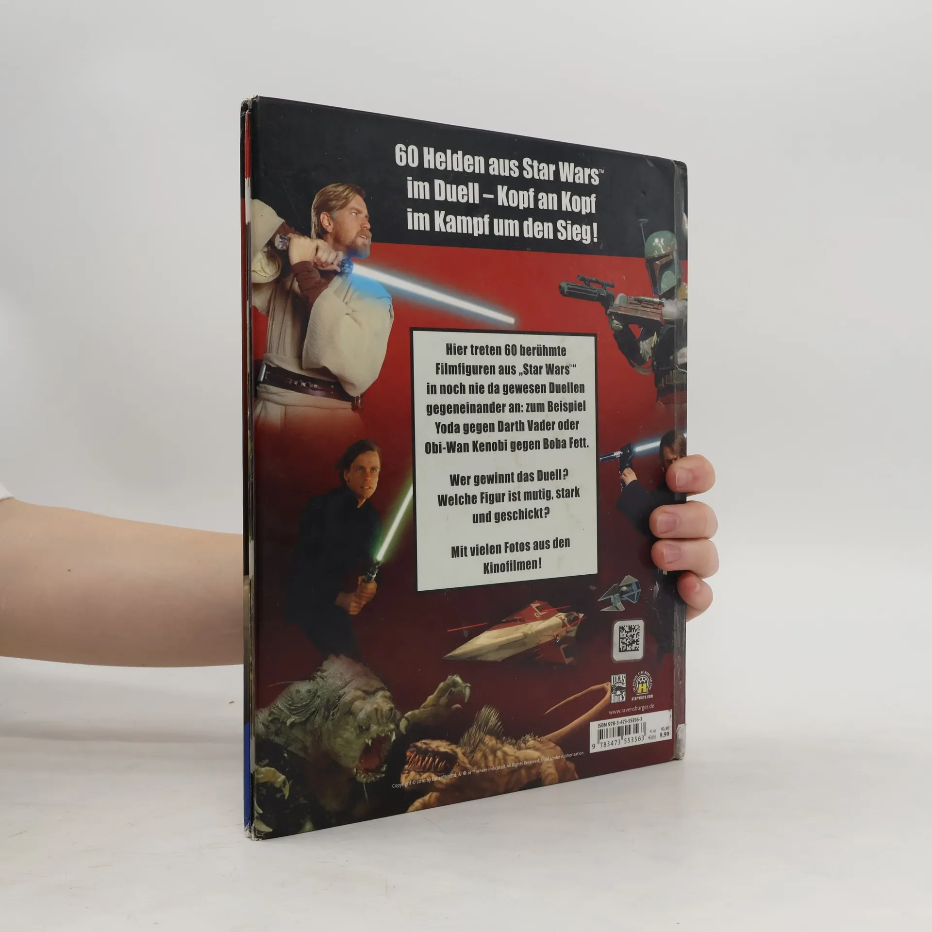 Foto-Filmbuch mit fiktiven Duellen von grössenteils jeweils einem Gegner der Jedi- (guten) und Sith- (schlechten) Seite, die Duelle haben so jedoch nicht stattgefunden. Wer würde anhand seiner Fähigkeiten als Sieger hervorgehen? Ab 10.
