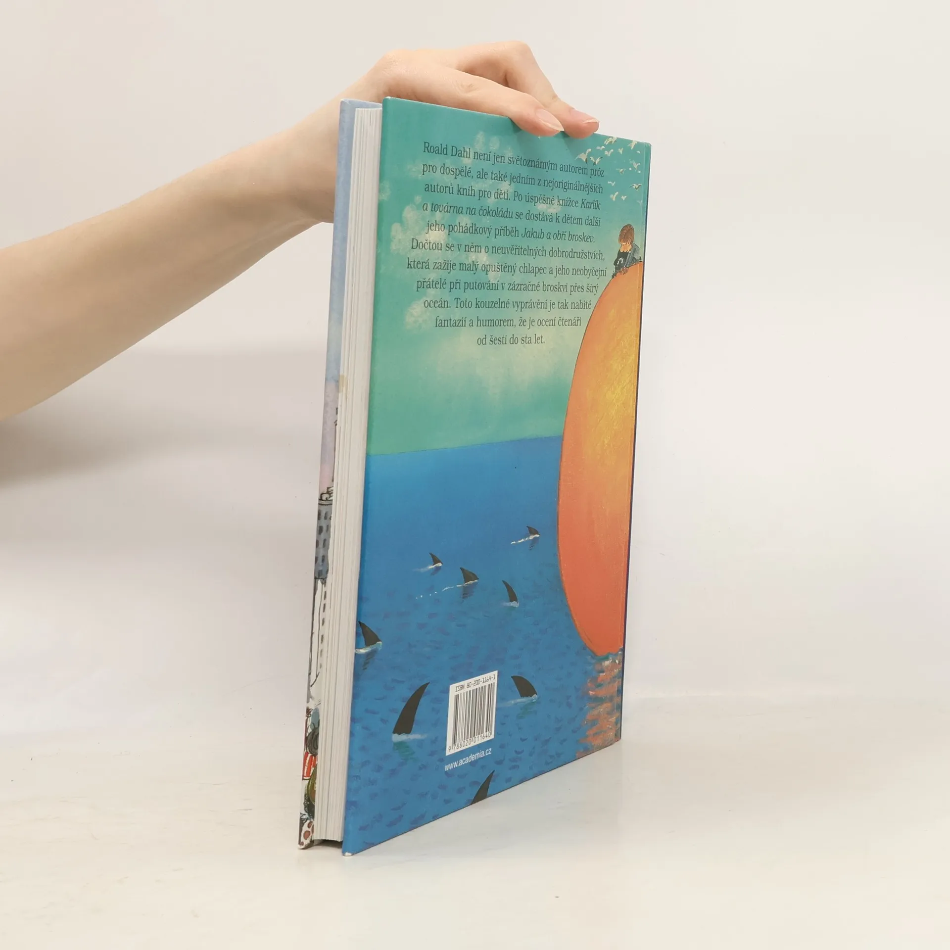 Roald Dahl není jen světoznámým autorem próz pro dospělé, ale také jedním z nejoriginálnějších autorů knih pro děti. Po úspěšné knížce Karlík a továrna na čokoládu vydává nakladatelství Academia další jeho pohádkový příběh Jakub a velikánská broskev. Vyprávění o dobrodružstvích, která zažije malý opuštěný chlapec a jeho neobyčejní přátelé díky zázračné obří broskvi, je tak nabité fantazií a humorem, že je ocení čtenáři od šesti do sta let.