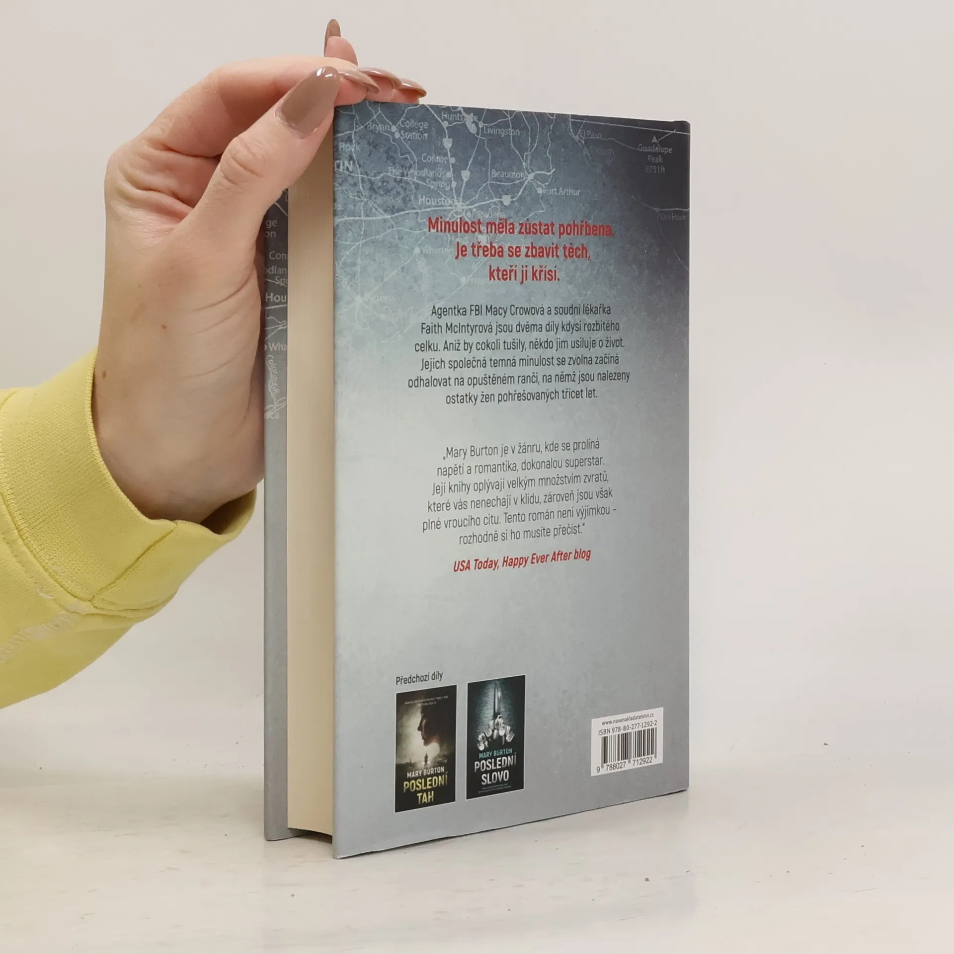 Mary Burton, autorka mnoha bestsellerů, se vrací s thrillerem, z nějž vám bude tuhnout krev žilách. Soudní lékařka Faith McIntyrová se s oběťmi násilných trestných činů setkává každý den, nicméně tato osoba je jiná. Žena v kómatu, jejíž život visí na vlásku poté, co ji srazilo auto, je rychle identifikována jako zvláštní agentka FBI Macy Crowová. Zůstává ale záhadou, co tato žena z Quantica dělala v místní temné uličce krátce po půlnoci. A další záležitost je ještě znepokojivější. Macy jako by byla dokonalou kopií Faith samotné. Faith náhle zjišťuje, že její dětství skrývá více tajemství, než si dosud myslela. Následuje stopy, které jí zanechala Macy, a společně s texaským rangerem Mitchellem Haydenem objevuje opuštěný ranč, na jehož pozemku je čekají další hrůzné nálezy. Ze stop, které postupně odhalují, vyplývá, že jde o mimořádně zvrácený a zapletený případ. Kdo ale v pozadí tahá za nitky? A podaří se Faith s Haydenem jejich plány překazit dřív, než bude pro všechny pozdě?
