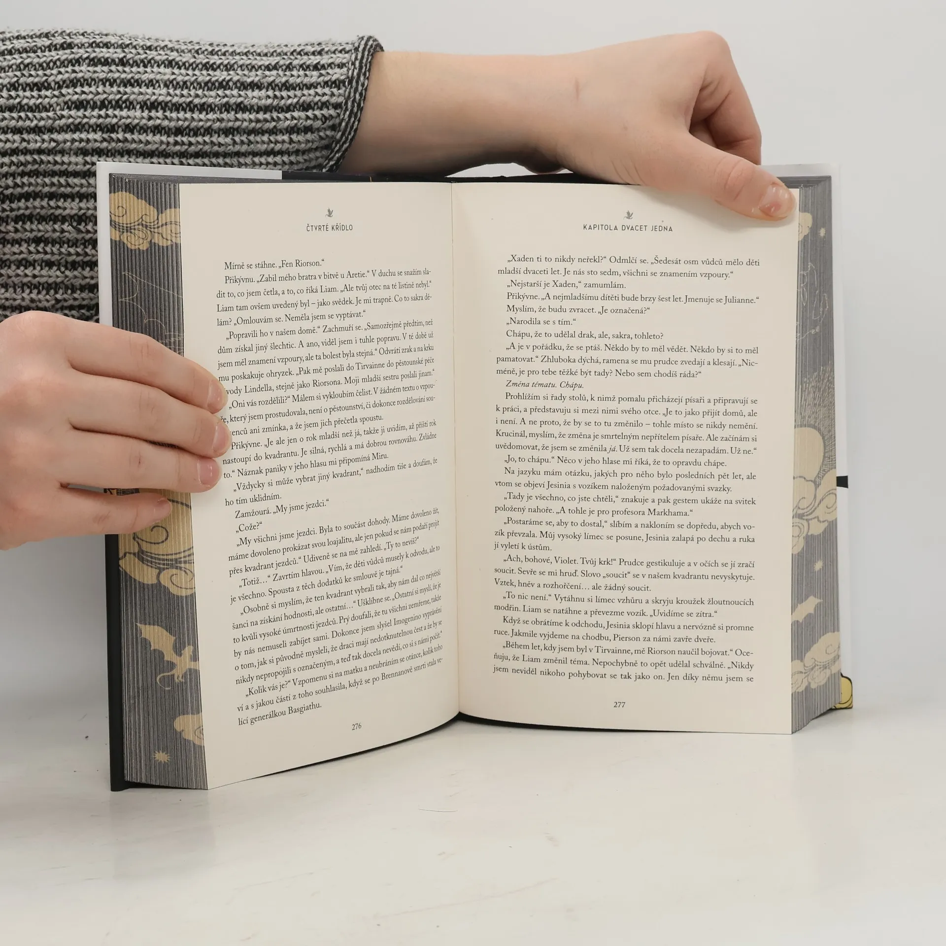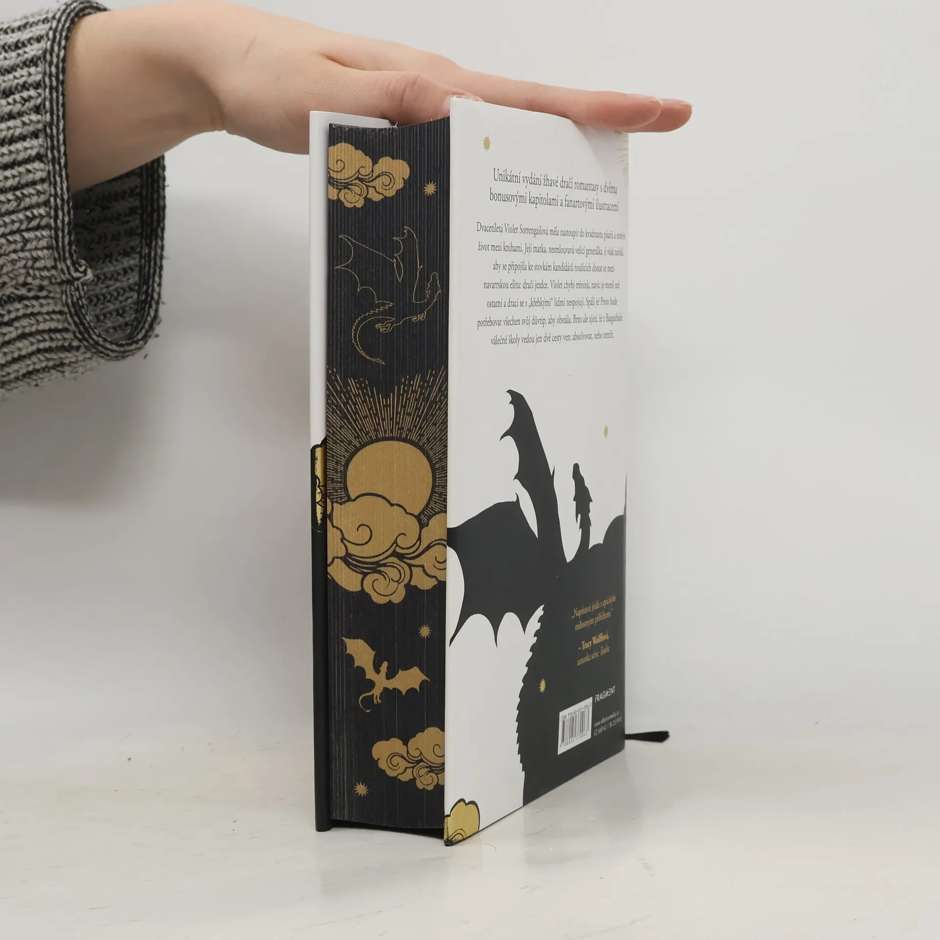 Unikátní vydání žhavé dračí romantasy s dvěma bonusovými kapitolami a fanartovými ilustracemi. Dvacetiletá Violet Sorrengailová měla nastoupit do kvadrantu písařů a strávit život mezi knihami. Její matka, nesmlouvavá velící generálka, jí však nařídí, aby se připojila ke stovkám kandidátů toužících dostat se mezi navarrskou elitu: dračí jezdce. Violet chybí trénink, navíc je menší než ostatní a draci se s „křehkými“ lidmi nespojují. Spálí je! Proto bude potřebovat všechen svůj důvtip, aby obstála. Brzo ale zjistí, že z Basgiathské válečné školy vedou jen dvě cesty ven: absolvovat, nebo zemřít.
