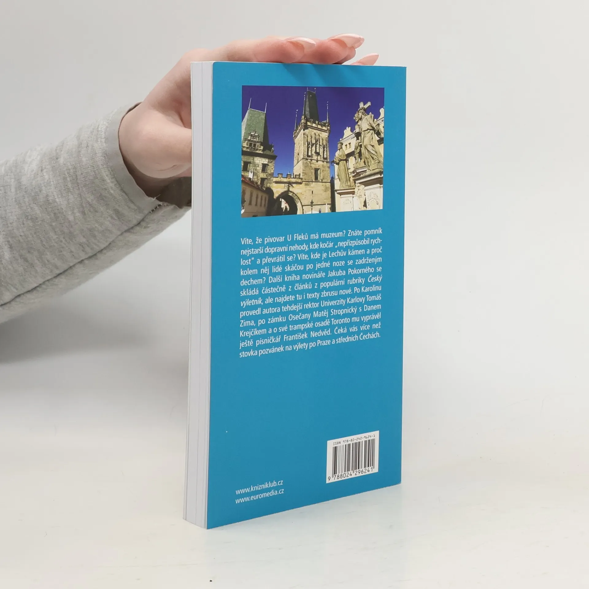 Víte, že pivovar U Fleků má muzeum? Znáte pomník nejstarší dopravní nehody, kde kočár "nepřizpůsobil rychlost" a převrátil se? Zaklepejte na skálu Klepec, navštivte muzeum hitmakera Bédi Smetany a skákejte po jedné noze se zadrženým dechem kolem Lechova kamene. Další kniha novináře Jakuba Pokorného se skládá částečně z článků z populární rubriky Český výletník, ale najdete tu i texty zbrusu nové. Čeká vás v ní více než stovka pozvánek na výlety po Praze a středních Čechách. Po Karolinu provedl autora rektor Univerzity Karlovy Tomáš Zima, po zámku Osečany jeho majitel Matěj Stropnický se svým partnerem Danem Krejčíkem a o své trampské osadě Toronto mu vyprávěl ještě písničkář František Nedvěd.