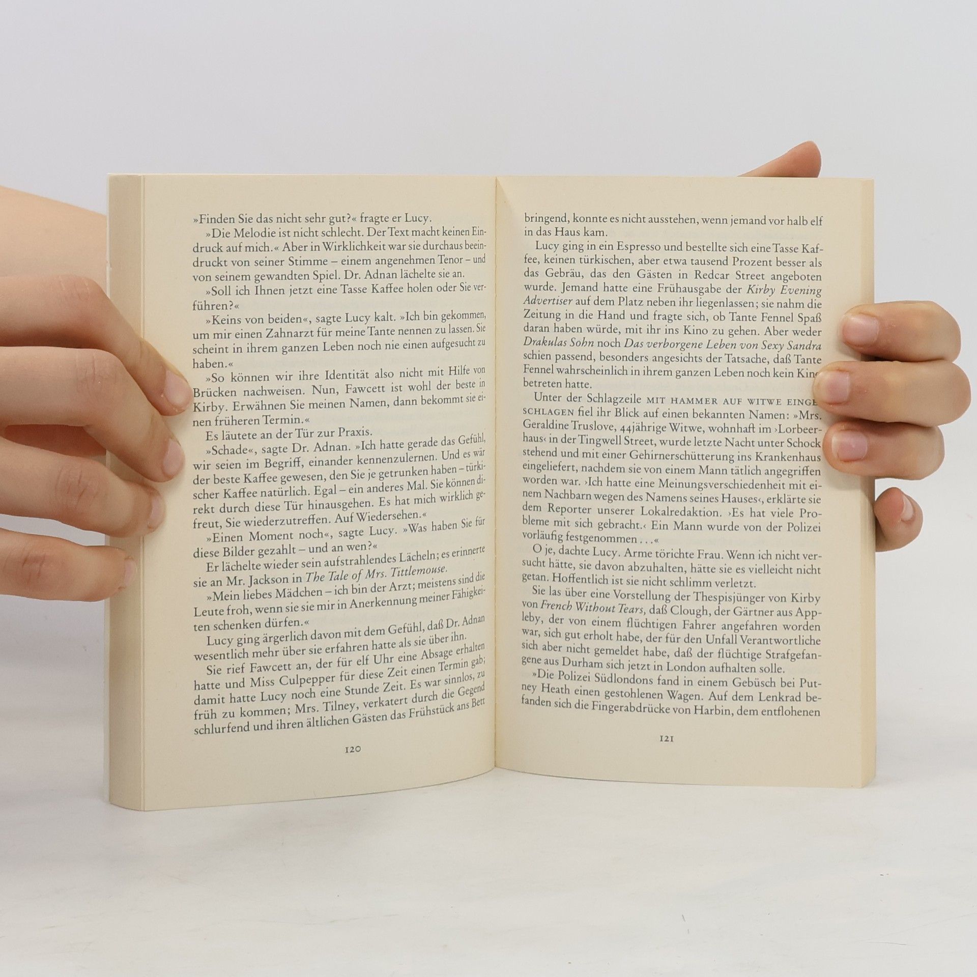 Lucy reist nach England, um herauszufinden, was mit ihrer alten Tante Fennel und deren Freundin geschehen ist. Die beiden alten Damen scheinen einfach verschwunden zu sein. Was wie ein ganz normaler Verwandtenbesuch beginnt, entwickelt sich rasch zu einem gefährlichen Abenteuer für Lucy. Seltsame Bilder werden zu Objekten der Habsucht; Rache, Betrug, Mordversuch und Tod bestimmen das Tempo der Handlung.