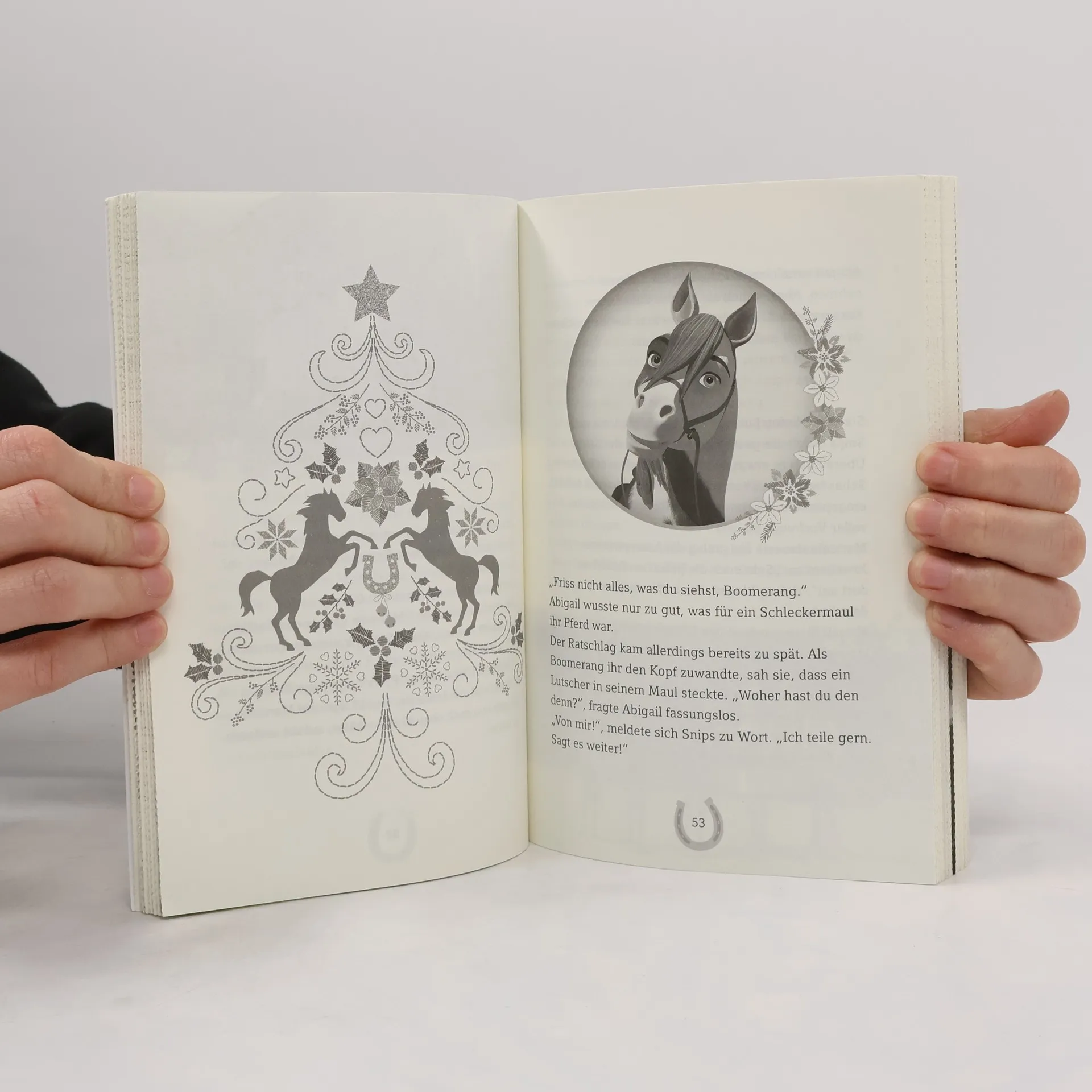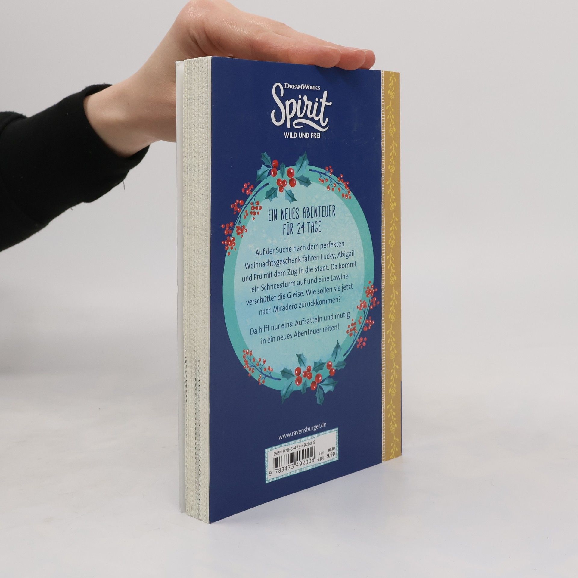 Bald ist Weihnachten! Die Freundinnen Lucky, Pru und Abigail machen sich auf den Weg in die Stadt. Sie möchten das perfekte Geschenk für ihre Liebsten finden. Aber natürlich finden sie stattdessen ein neues Abenteuer. Welches? In 24 Kapiteln erfährst du jeden Tag ein bisschen mehr. Mit Seiten zum Auftrennen. Ein neues Weihnachtsabenteuer mit Lucky und Spirit – in 24 Kapiteln! So vergeht die Zeit bis Weihnachten wie im Flug: Jeden Tag kannst du Seiten auftrennen und ein Kapitel dieser neuen Weihnachtsgeschichte mit Lucky und Spirit lesen. Weihnachten rückt näher - doch was schenkt man seinen Liebsten? Lucky, Abigail und Pru möchten dieses Jahr das perfekte Geschenk finden. Dafür machen sie sich auf den Weg in die Stadt. Doch auf dem Rückweg nach Miradero verschüttet eine Lawine die Gleise und der Zug kann nicht weiter. Zum Glück haben die Freundinnen ihre Pferde Spirit, Chica Linda und Boomerang immer an ihrer Seite. Aber wie sollen die anderen Fahrgäste hier wieder wegkommen? Da hilft nur eins: Aufsatteln und mutig in ein neues Abenteuer reiten!