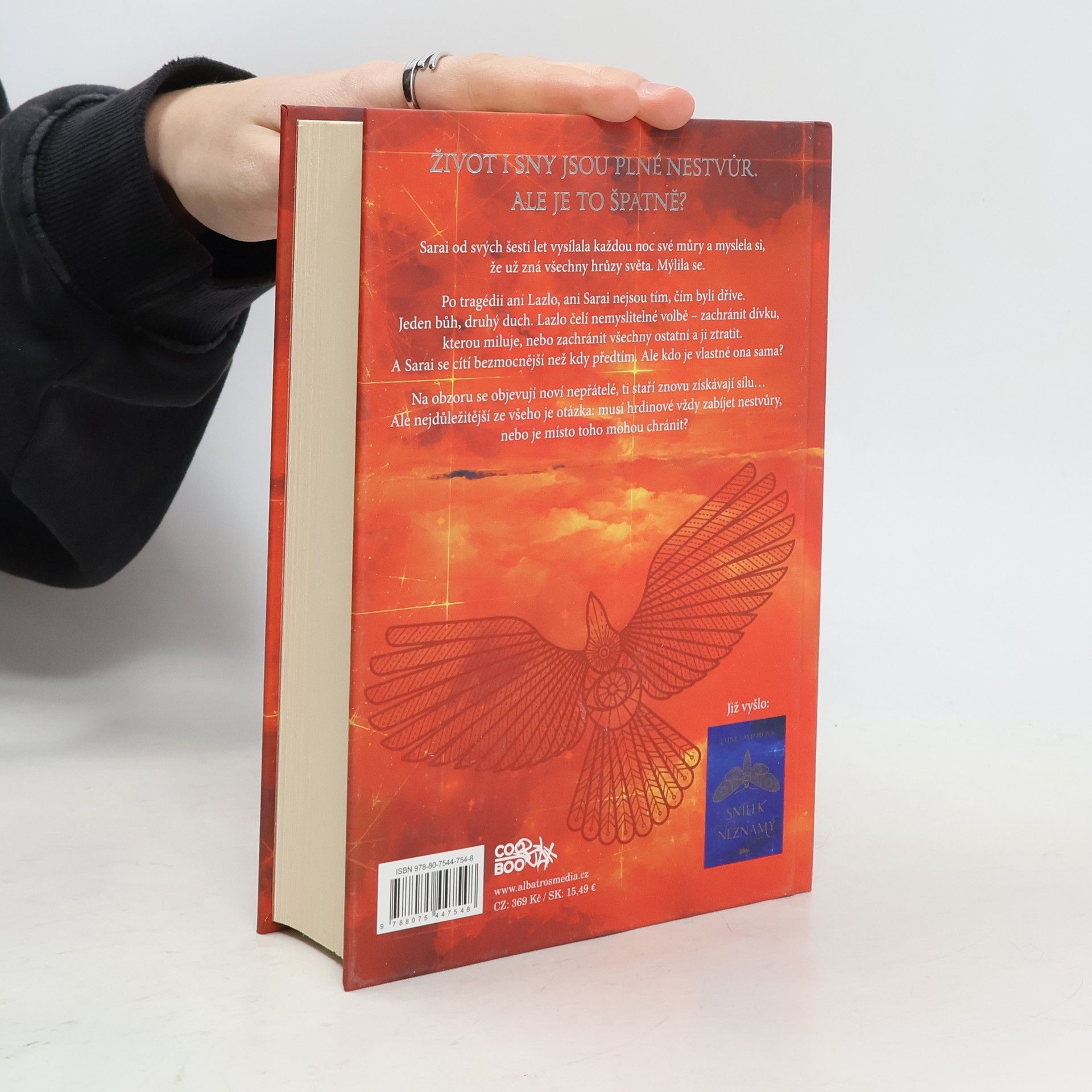 Sarai vysílala každou noc své můry a myslela si, že už zná všechny hrůzy světa. Mýlila se. Po tragédii ani Lazlo, ani Sarai nejsou tím, čím byli dříve. Jeden bůh, druhý duch. Lazlo čelí nemyslitelné volbě – zachránit dívku, kterou miluje, nebo zachránit všechny ostatní a ji ztratit. A Sarai se cítí bezmocnější než kdy předtím. Na obzoru se objevují noví nepřátelé, ti staří znovu získávají sílu… Ale nejdůležitější ze všeho je otázka: Musí hrdinové vždy zabíjet nestvůry, nebo je místo toho mohou chránit?