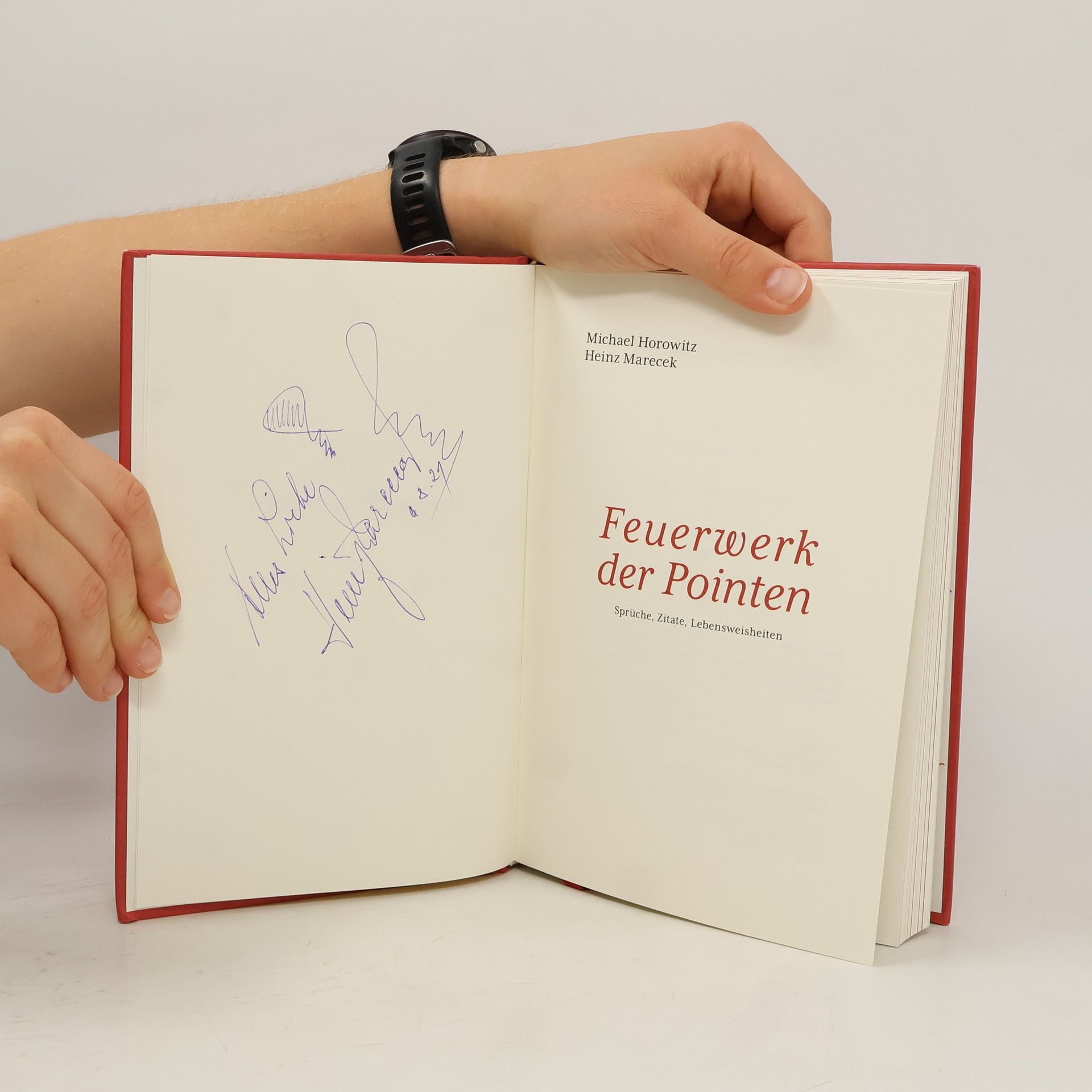 Ein Kaleidoskop geistreicher Ideen, ein Kompendium guter Laune – Schauspieler Heinz Marecek und Autor Michael Horowitz schreiben einander täglich. Jeden Morgen schleudern sich die Freunde die „Pointe des Tages“ zu: außergewöhnliche Aphorismen, brillante Bonmots und zündende Zitate. Je nach Lust, Laune und Gemütszustand. Nach Themen gegliedert gibt diese Sammlung satirische, geistvolle und oft überraschende Einblicke in die Vielfalt unseres Lebens. Das „Feuerwerk der Pointen“ bietet humorvolle Konversation statt Social-Media-Kürzeln.