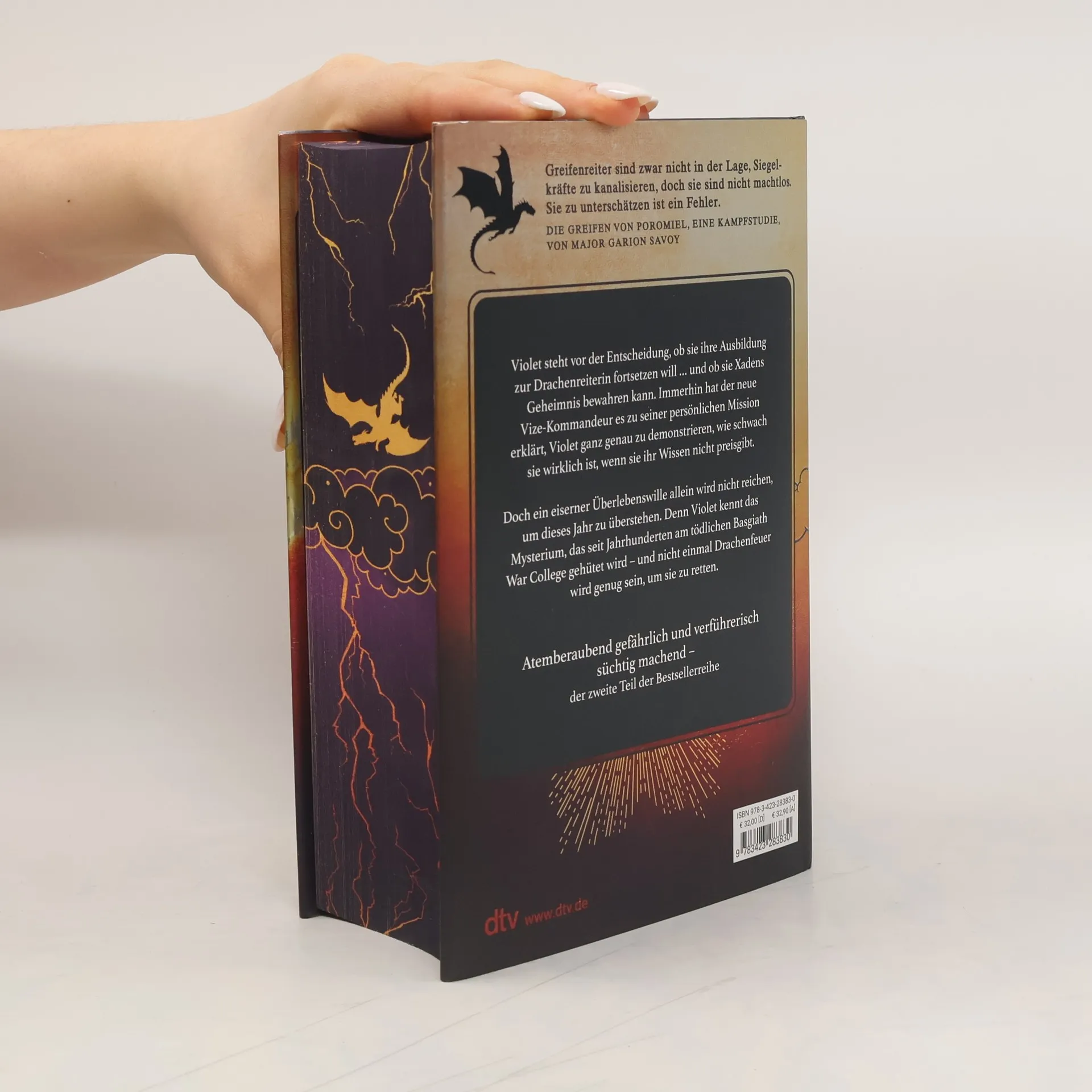 Violet muss entscheiden, ob sie ans tödliche Basgiath War College zurückkehren will … und inwieweit sie Xaden vertrauen kann. Alle hatten erwartet, dass Violet Sorrengail während ihres ersten Jahres am Basgiath War College sterben würde – Violet eingeschlossen. Doch sie hat überlebt. Das richtige Training beginnt erst jetzt und Violet fragt sich, wie sie das überstehen soll. Die Herausforderungen sind zermürbend, extrem brutal und dafür gedacht, die Schmerzgrenze der Reiter ins Unermessliche zu treiben, aber das größte Problem ist der neue Vizekommandeur, der Violet brechen will – es sei denn, sie hintergeht den Mann, den sie liebt. Auch wenn Violets Körper schwächer und fragiler ist, hat sie immer noch ihren Verstand – und ihren eisernen Willen. Und die wichtigste Lektion, die sie bisher gelernt hat, scheinen alle anderen zu vergessen: Drachenreiter machen ihre eigenen Regeln ...