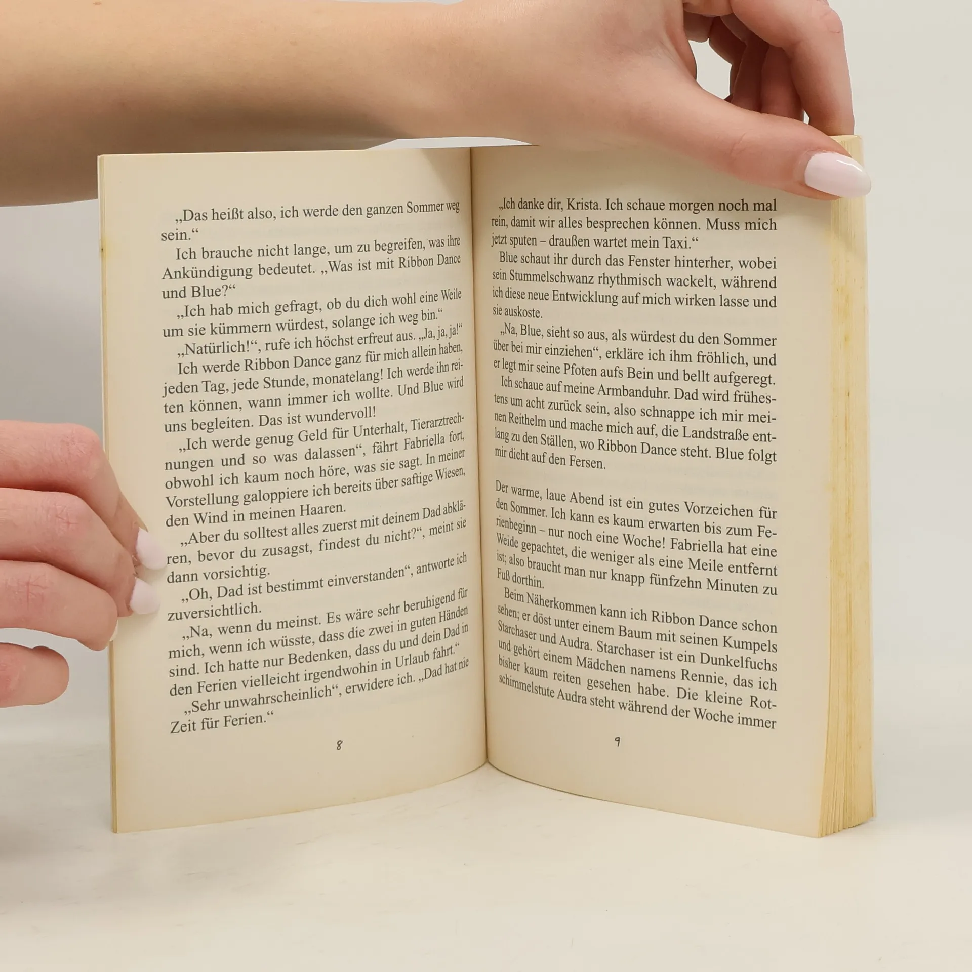 Krista verbringt den Sommer mit ihrem Lieblingspferd Ribbon Dance und dem Hund Blue bei ihrer Cousine Shannon an der Küste. Doch aus den erhofften Traumferien scheint nichts zu werden – Krista ist vom Pech verfolgt. Erst lahmt Ribbon Dance und dann verschwindet auch noch Blue.Auf der Suche nach ihm lernt sie die Einsiedlerin Mel kennen, die etwas zu verbergen scheint. Und woher kommt dieser wundervolle graue Hengst, der immer wie aus dem Nichts auftaucht? Mel scheint mehr zu wissen, und schließlich überschlagen sich die Ereignisse …