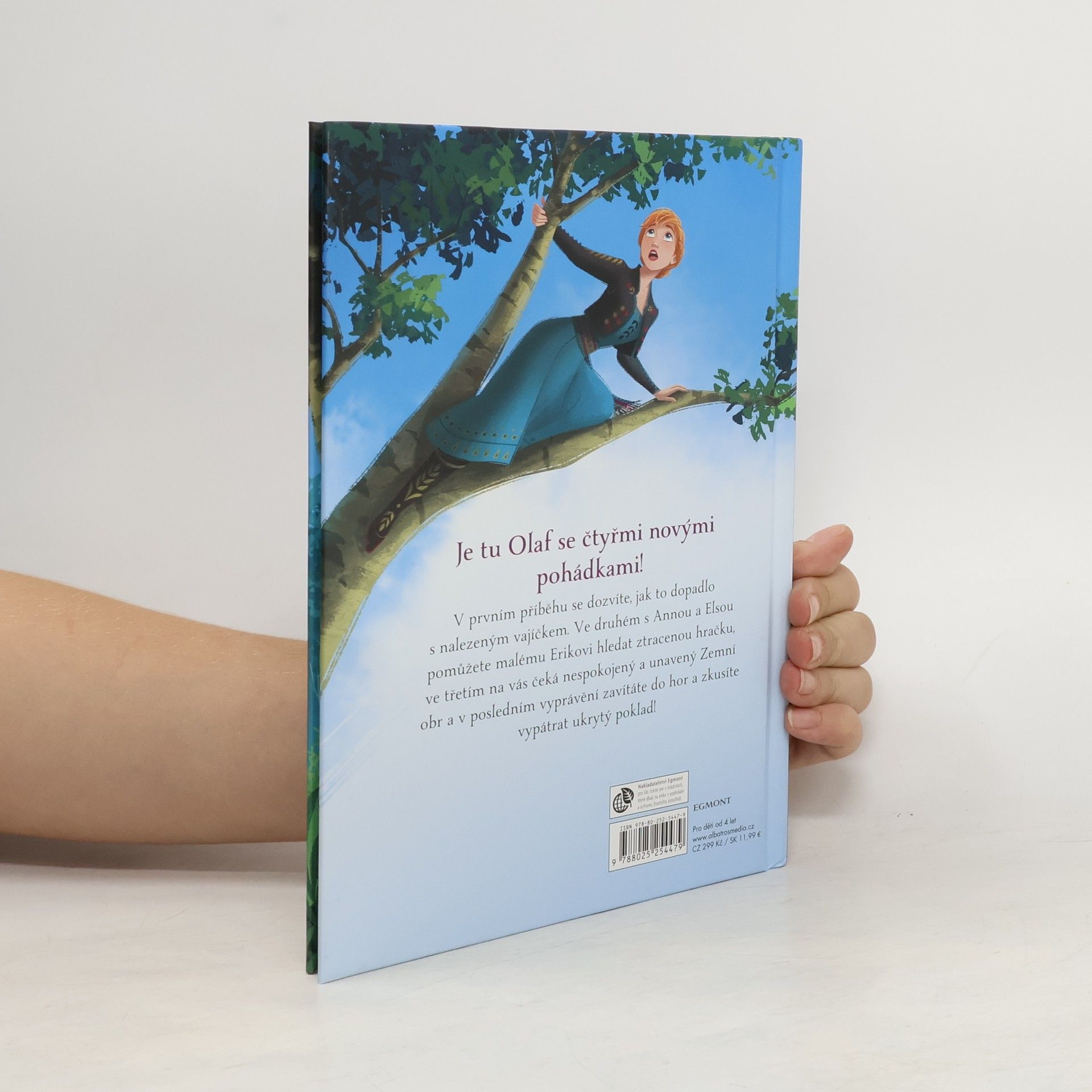 tu Olaf se čtyřmi novými pohádkami! V prvním příběhu se dozvíte, jak to dopadlo s nalezeným vajíčkem. Ve druhém s Annou a Elsou pomůžete malému Erikovi hledat ztracenou hračku, ve třetím na vás čeká nespokojený a unavený zemní obr a v posledním vyprávění zavítáte do hor a zkusíte vypátrat ukrytý poklad krále Agnarra!