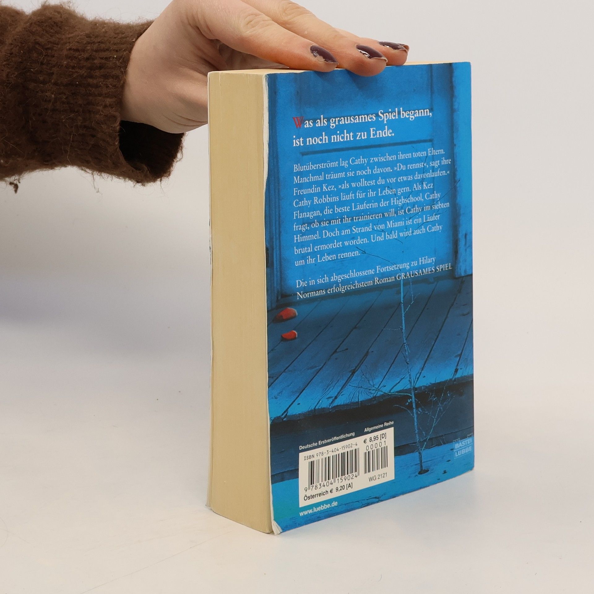 Blutüberströmt lag Cathy zwischen ihren toten Eltern. Manchmal träumt sie noch davon. „Du rennst“, sagt ihre Freundin Kez, „als wolltest du vor etwas davonlaufen.“ Cathy Robbins läuft für ihr Leben gern. Als Kez Flanagan, die beste Läuferin der Highschool, Cathy fragt, ob sie mit ihr trainieren will, ist Cathy im siebten Himmel. Doch am Strand von Miami ist ein Läufer brutal ermordet worden. Und bald wird auch Cathy um ihr Leben rennen. Die in sich abgeschlossene Fortsetzung zu Hilary Normans erfolgreichstem Roman Grausames Spiel.