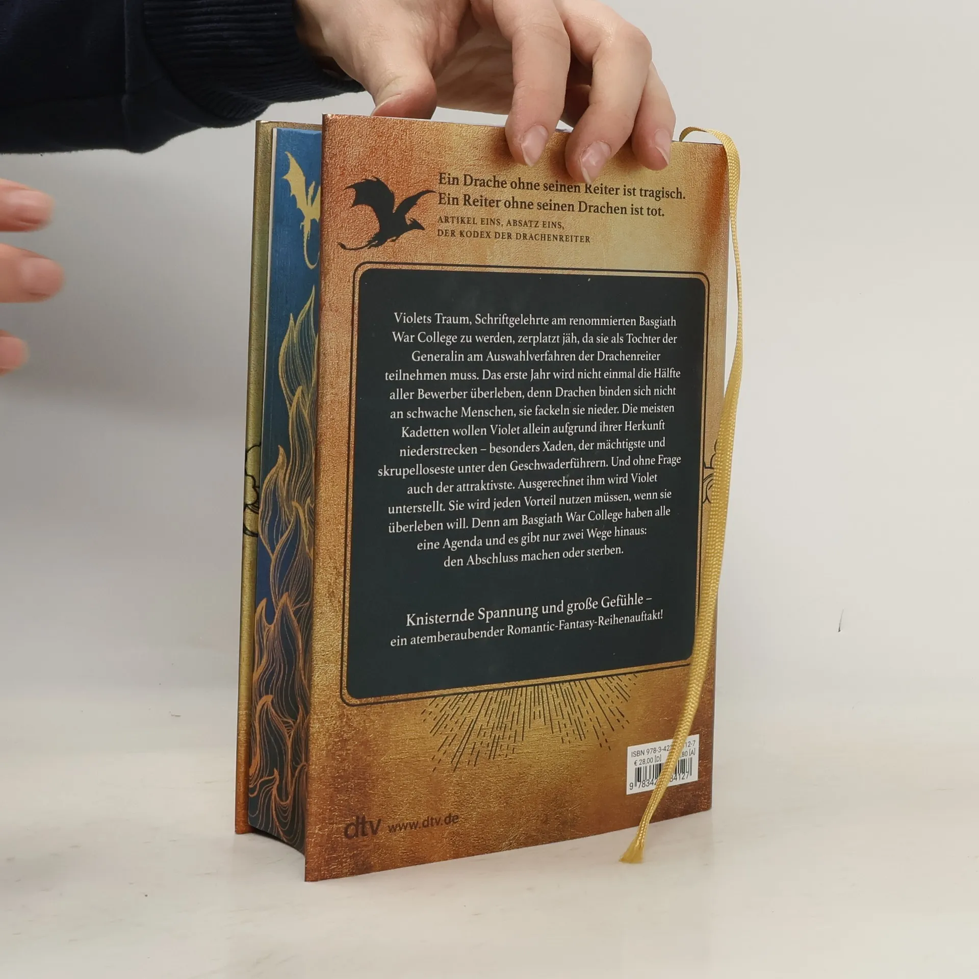 Ein Drache ohne Reiter ist tragisch, ein Reiter ohne Drachen ist tot. In dieser opulenten Deluxe-Ausgabe von ›Fourth Wing‹ erwartet die Leser ein atemberaubendes Fantasy-Abenteuer. Violet, die Schriftgelehrte am Basgiath War College, sieht ihren Traum, dort zu studieren, in Gefahr, als sie als Tochter der Generalin am Auswahlverfahren der Drachenreiter teilnehmen muss. Die Überlebenschancen sind gering, denn Drachen wählen keine schwachen Menschen – sie vernichten sie. Viele Kadetten wollen Violet aufgrund ihrer Herkunft ausschalten, insbesondere Xaden, der mächtigste und skrupelloseste Geschwaderführer, dem sie zugeteilt wird. Um zu überleben, muss Violet alle Vorteile nutzen, die ihr zur Verfügung stehen. Am Basgiath War College verfolgen alle ihre eigenen Ziele, und es gibt nur zwei Auswege: den Abschluss oder den Tod. Diese Geschichte bietet knisternde Spannung und große Emotionen und ist der Auftakt zu einer fesselnden Romantic-Fantasy-Reihe. Die Folgebände sind nicht unabhängig lesbar. Rebecca Yarros erschafft beeindruckende Drachen, während die Leser in ein unvergleichliches Abenteuer eintauchen, das sie nicht mehr loslässt.