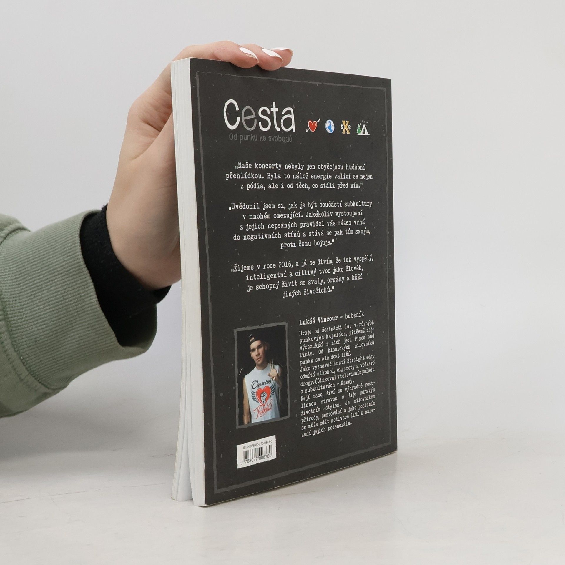 Jak to vypadá, když se punkový bubeník rozhodne nepít, nekouřit a nedrogovat? Lukáš Vincour napsal autobiografickou knihu o tak trochu netradiční cestě člena několika úspěšných hudebních skupin. Nahlédnete do zákulisí kapel, se kterými se vypracoval od prvních koncertů ve sklepech a garážích až po vyprodané kluby po celé Evropě. Na své cestě prošel vývojem, ve kterém se oprostil od nepsaných pravidel subkultury a došel tak k osobní svobodě. A nebojí se o tom otevřeně mluvit ve své prvotině, kde bez obalu popisuje postoj k veganství, punku a svobodě. Jeho životní filozofie a osobní přiznání vás prostě nejen donutí k zamyšlení, ale inspiruje vás k přehodnocení ustálených vzorců ve společnosti. Stal se vzorem i pro děti na základních školách, kde je motivuje k nalezení svého potenciálu. Jeho bezmezná touha plnit si sny ho dovedla až k tomu, že se jednoho dne rozhodl napsat, a vlastními silami vydat tuto knihu.