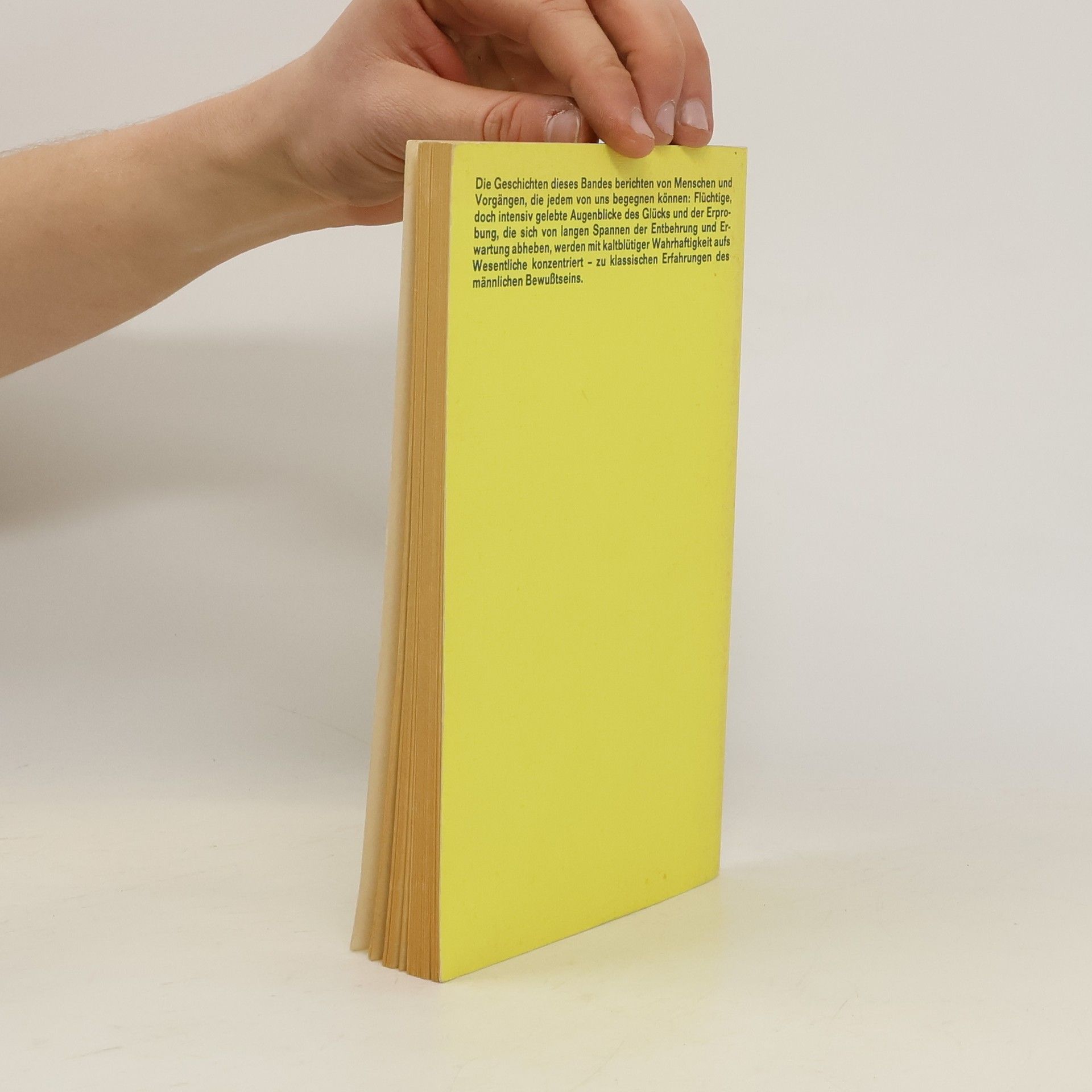 Die Geschichten dieses Bandes berichten von Menschen und Vorgängen, die jedem von uns begegnen können: Flüchtige, doch intensiv gelebte Augenblicke des Glücks und der Erprobung, die sich von langen Spannen der Entbehrung und Erwartung abheben, werden mit kaltblütiger Wahrhaftigkeit aufs Wesentliche konzentriert - zu klassischen Erfahrungen des männlichen Bewusstseins.