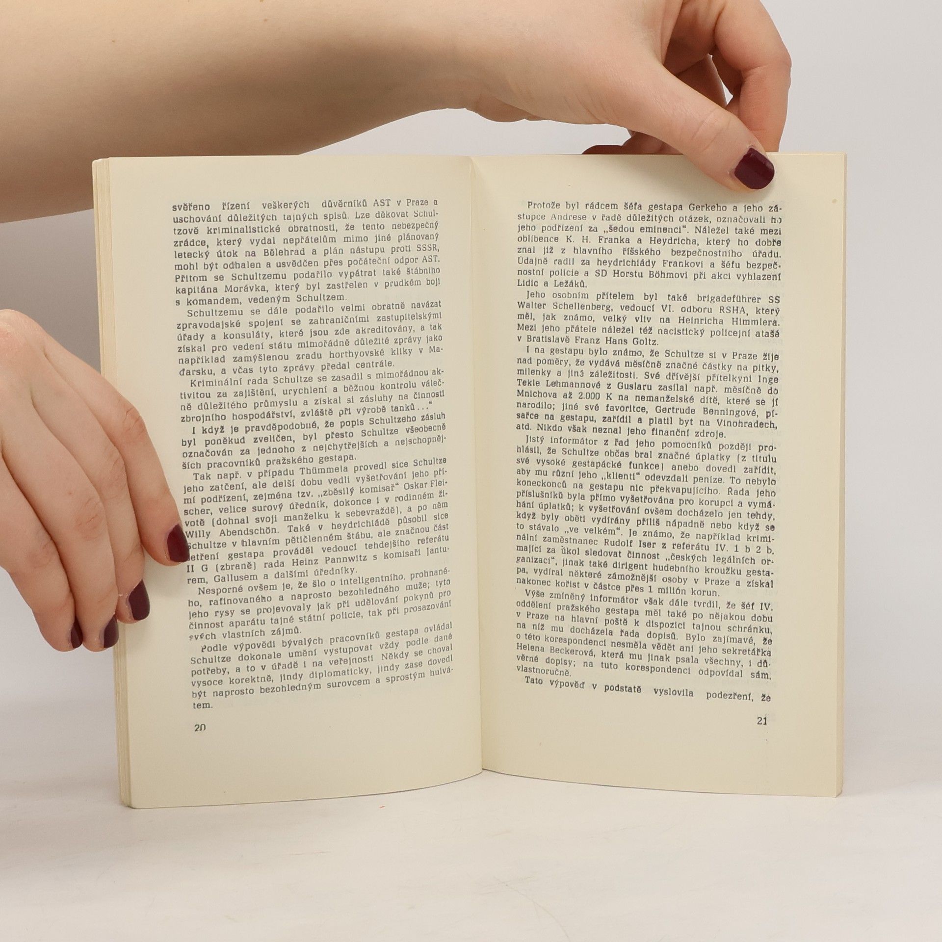 Za použití dokumentů z archívu K.H. Franka a výpovědí obžalovaných úředníků gestapa autor rekonstruuje plasticky gestapáckou mašinérii, která po více než šest let německé okupace postihovala brutálním způsobem "nepřátele Říše". Čtenář se tu seznámí s organizační strukturou gestapa, s činností a kompetencí jednotlivých oddělení pražské ústředny a pozná významné postavy nacistického policejního aparátu. Jádrem líčení jsou poslední válečné měsíce,kdy se odpovědní činitelé horečně snaží zlikvidovat kompromitující doklady o zločinech gestapa u nás.