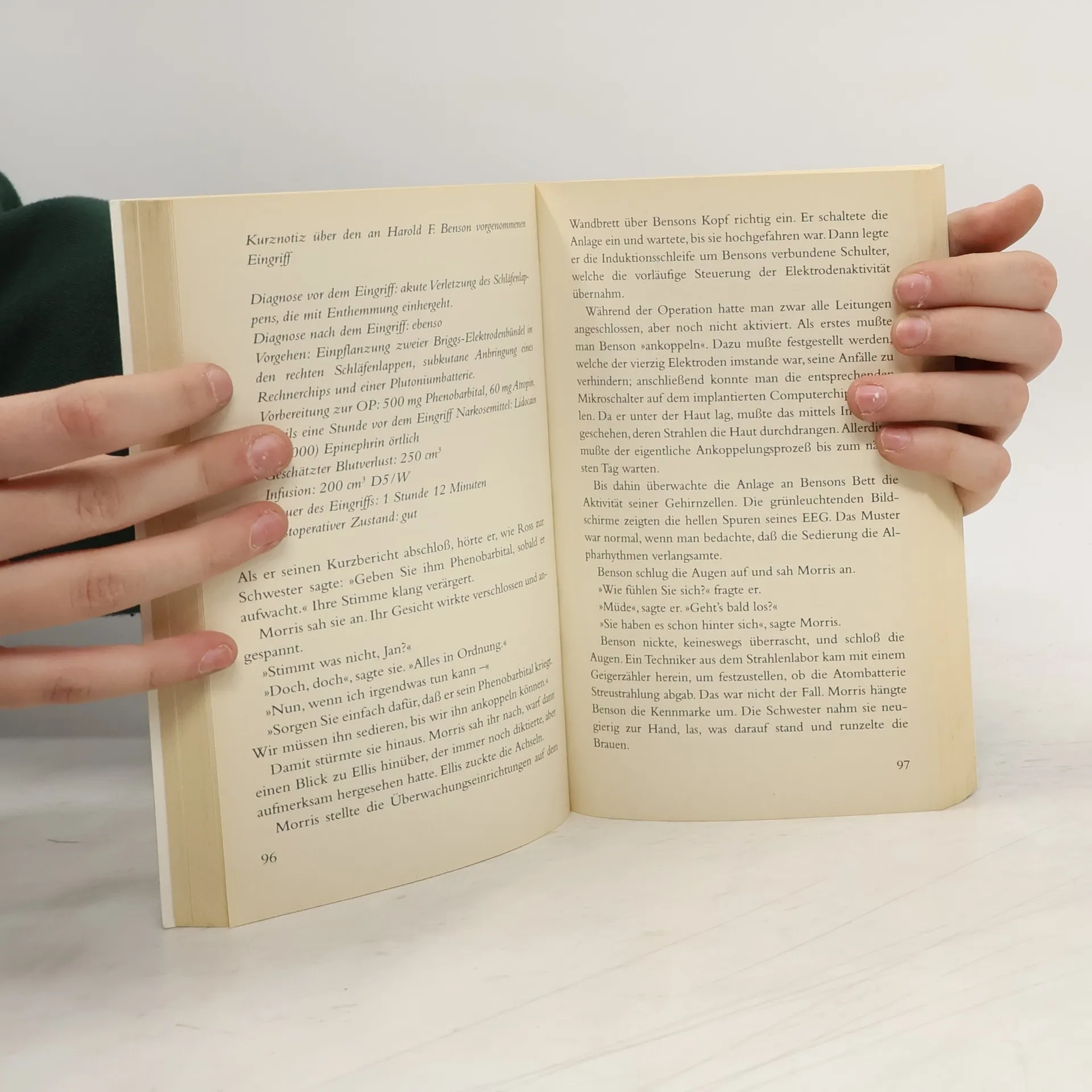 Harry Benson leidet seit einem Autounfall unter heftigen Anfällen, die ihn aggressiv und gewalttätig werden lassen. Der Psychiater Roger Mc Pherson unterzieht Benson einer neuartigen Operation, um weitere Anfälle zu verhindern. Der Eingriff selbst verläuft erfolgreich, doch dann geschieht etwas Unvorhergesehenes: Benson flieht überraschend, und von da an ist ein Psychopath unterwegs in Los Angeles, und sein Vorhaben ist tödlich. Ein packender Wissenschafts- und Medizinthriller vom Autor der Welterfolge „Jurassic Park“ und „Enthüllung“.