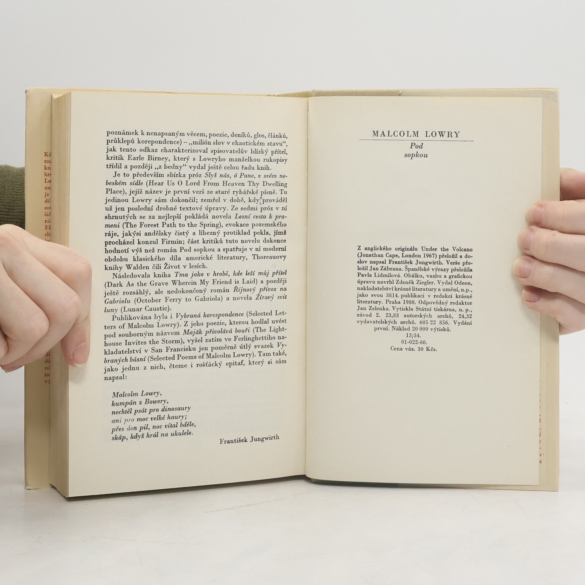 Pod sopkou, Pavla Lidmilová, Jan Zábrana, František Jungwirth, Malcolm Lowry